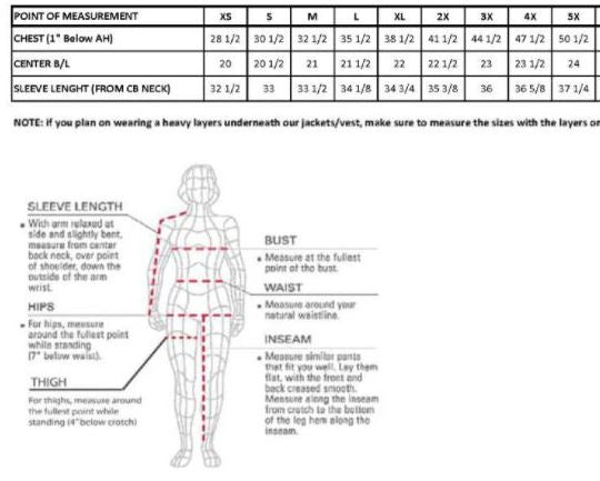 - Ladies leather can run two sizes smaller – measure your chest size!