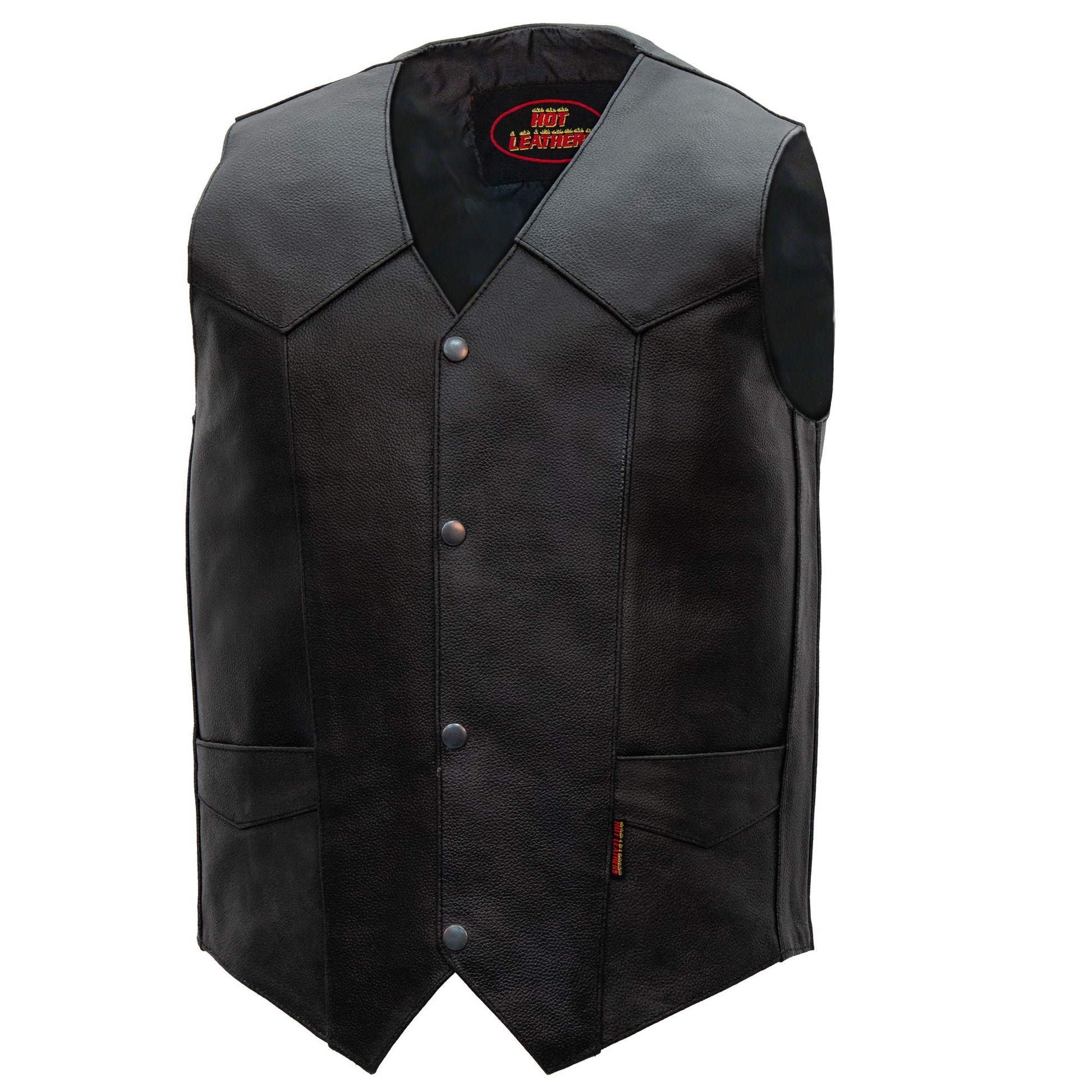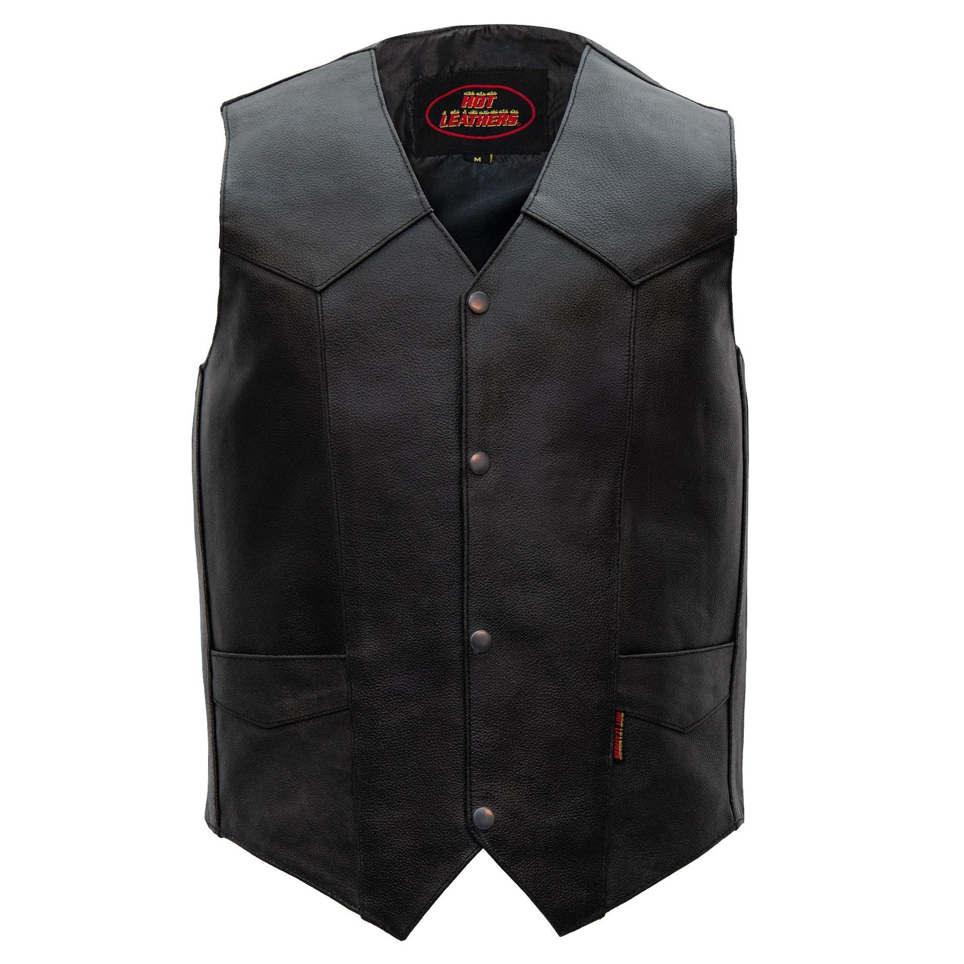 Hot Leathers VSM1014 Men's Motorcycle Black Heavyweight Leather Biker Vest with Inside Pocket