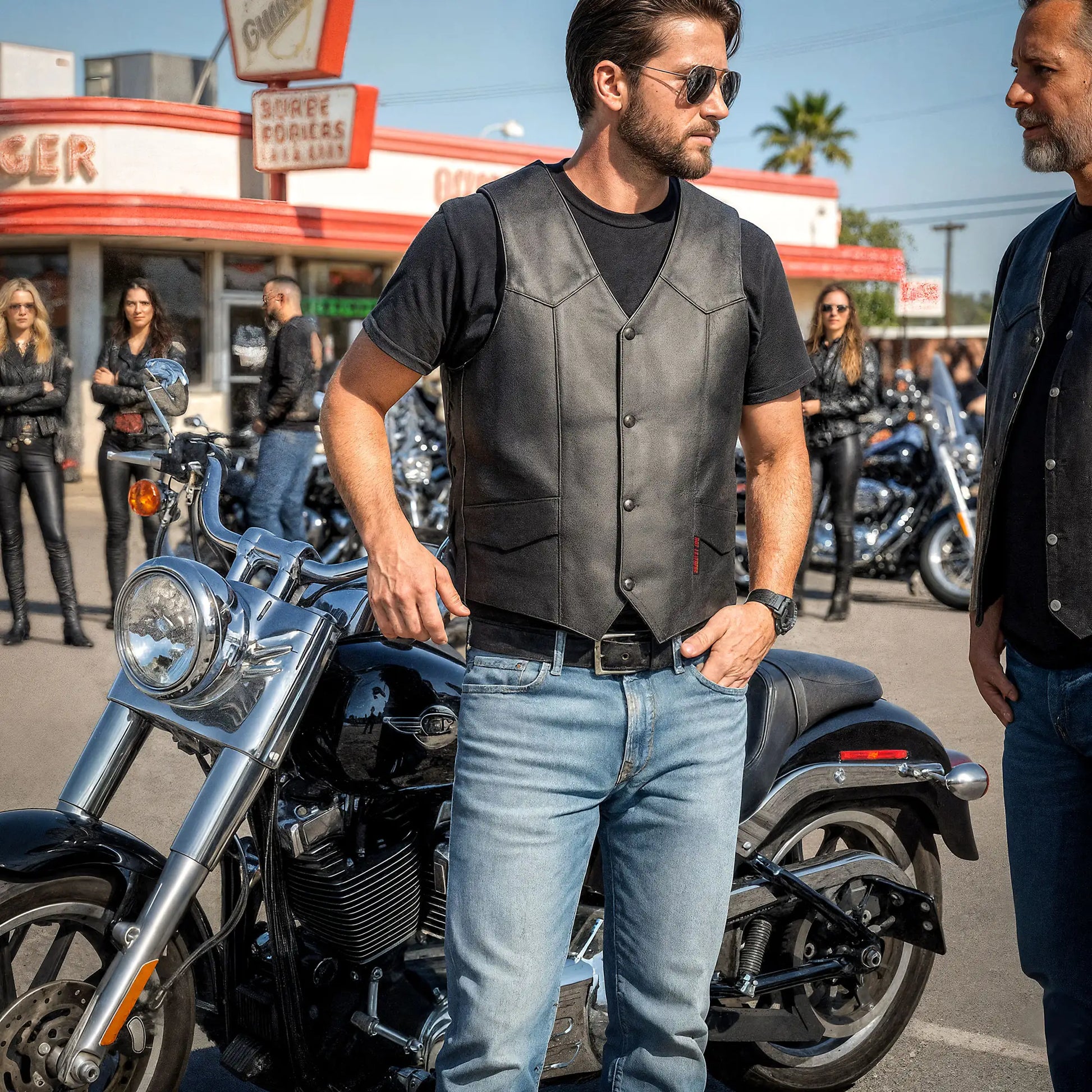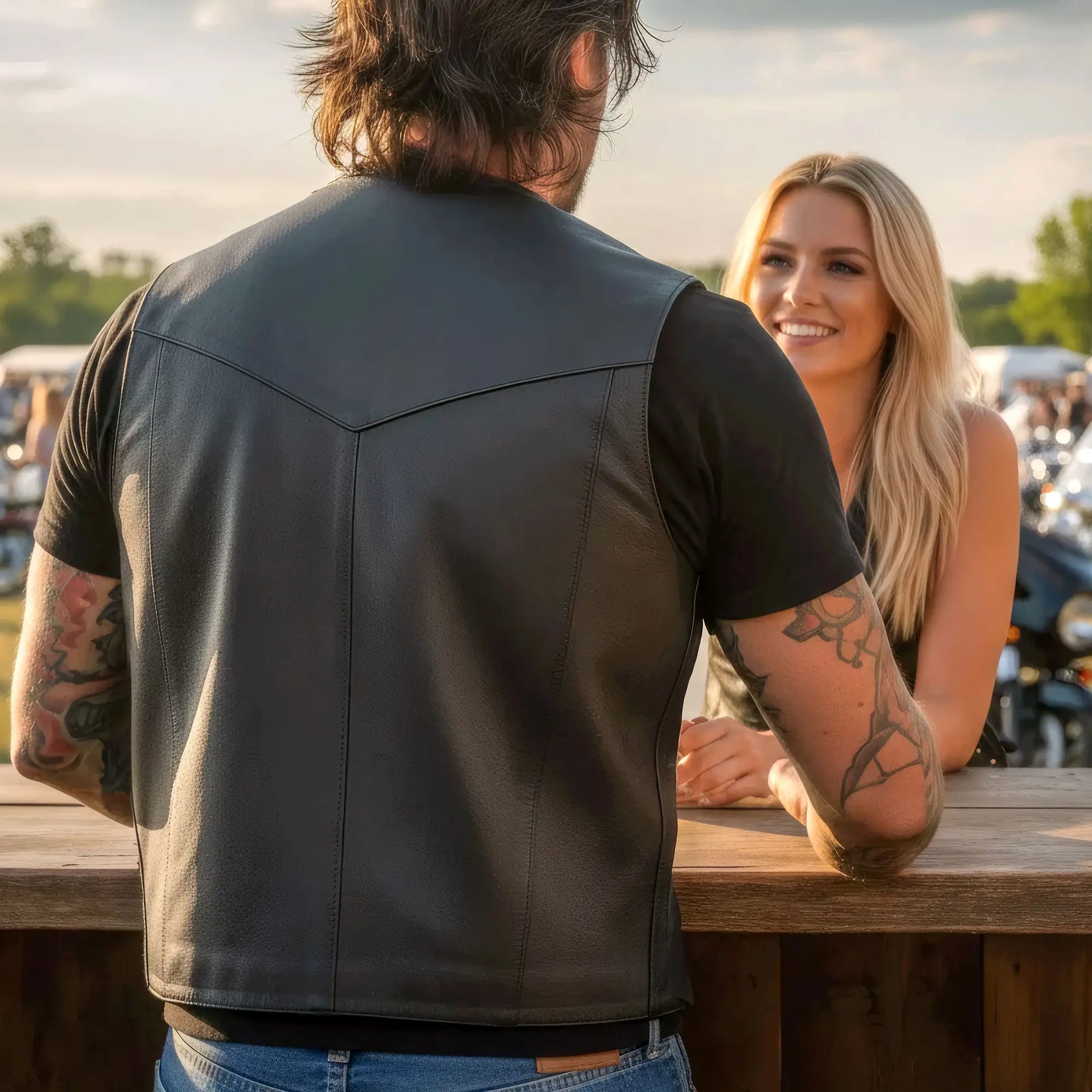 Hot Leathers VSM1015 Men's Black Heavyweight Motorcycle style Leather Biker Vest with Side Laces