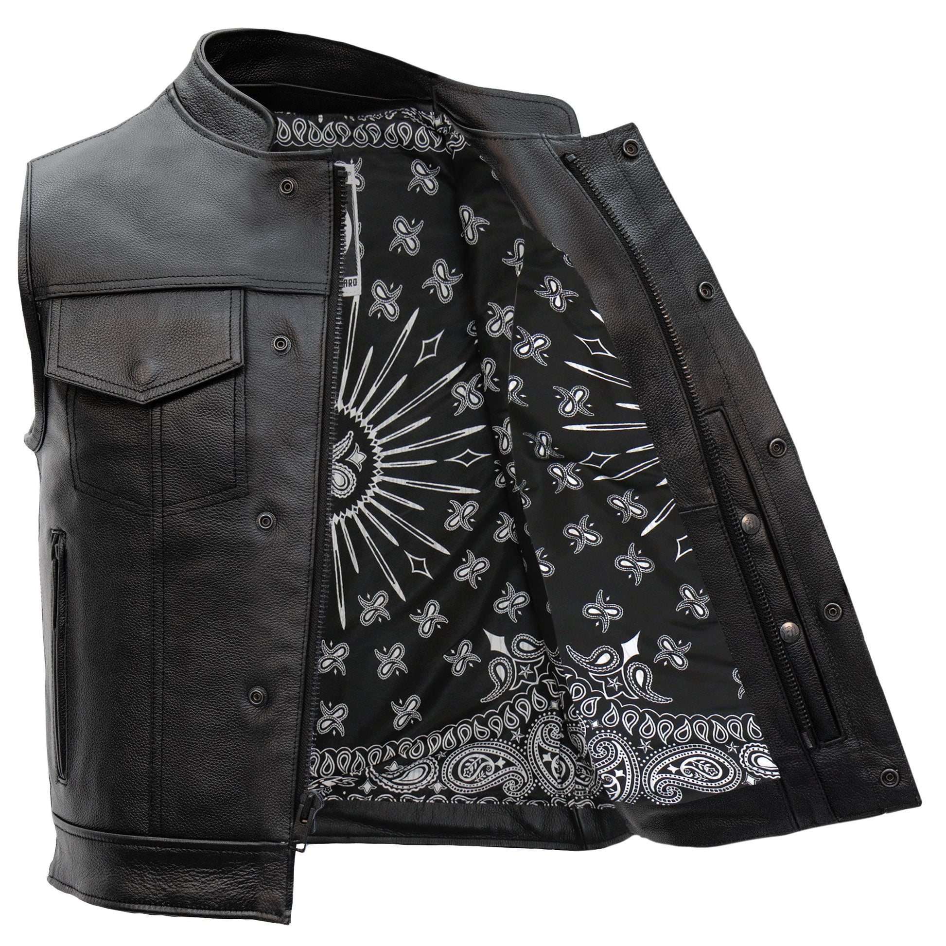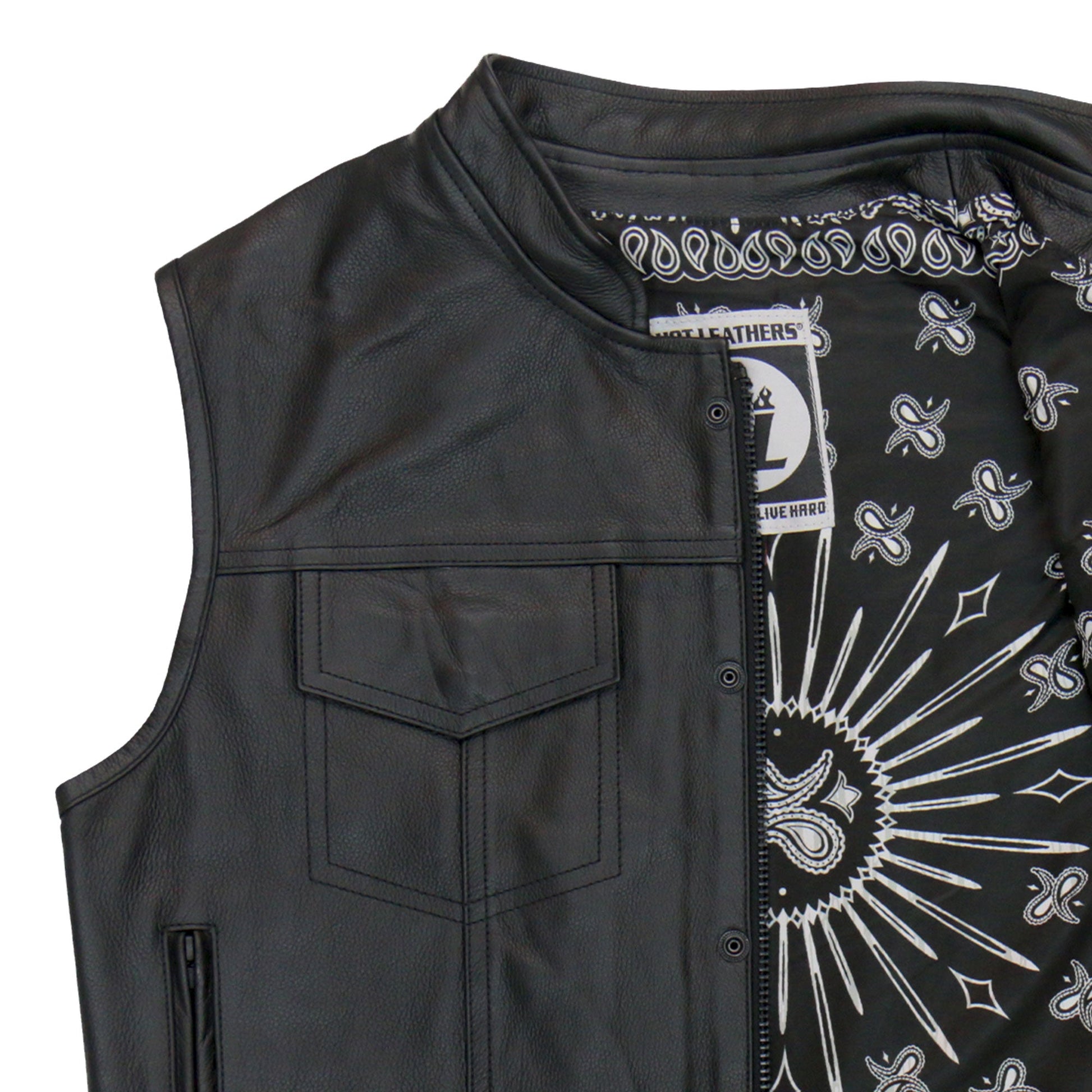 Hot Leathers VSM1049 Men's Black 'Paisley' Motorcycle Club style Conceal and Carry Leather Biker Vest