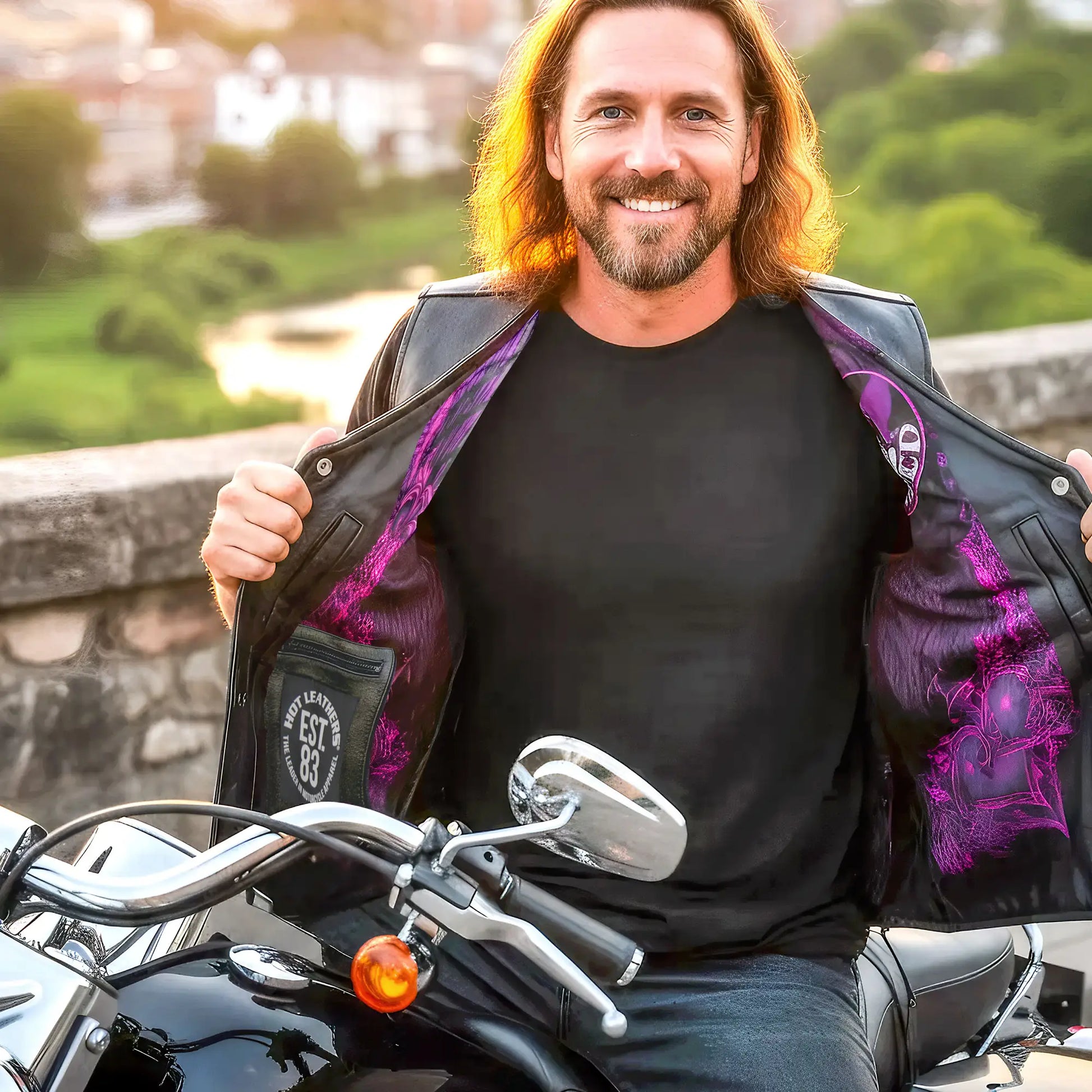 - Ladies leather can run two sizes smaller – measure your chest size!