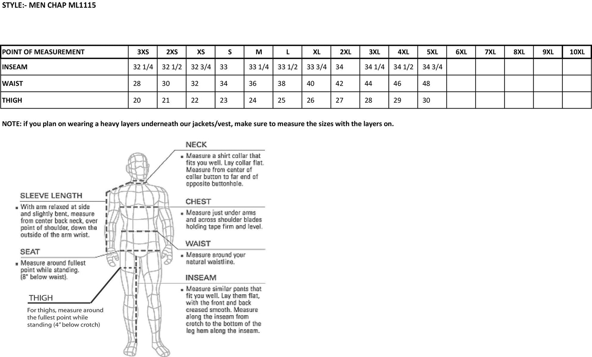 PLEASE NOTE: Important FYI facts to buying that right jacket, vest or chap