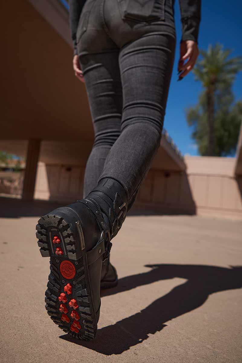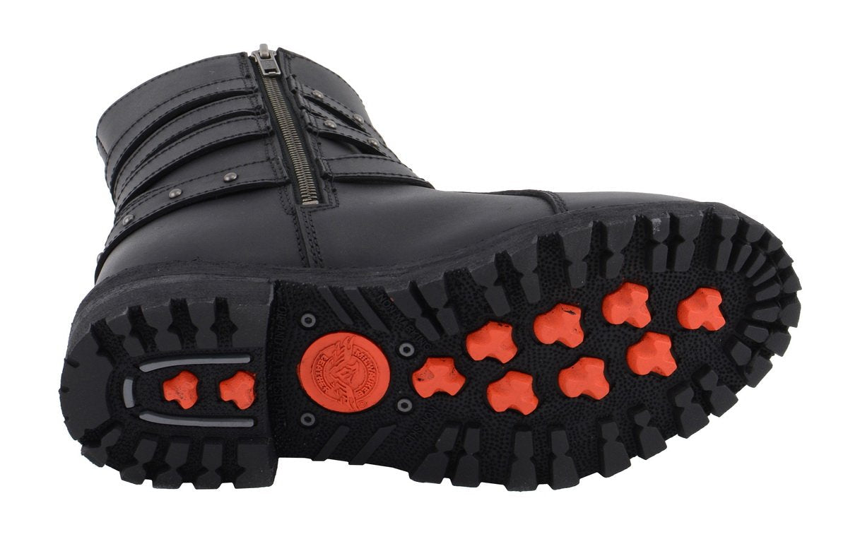 Milwaukee Leather MBL9399 Women's 9-Inch Triple Buckle Black Leather Harness Biker Boots w/ Side Zipper
