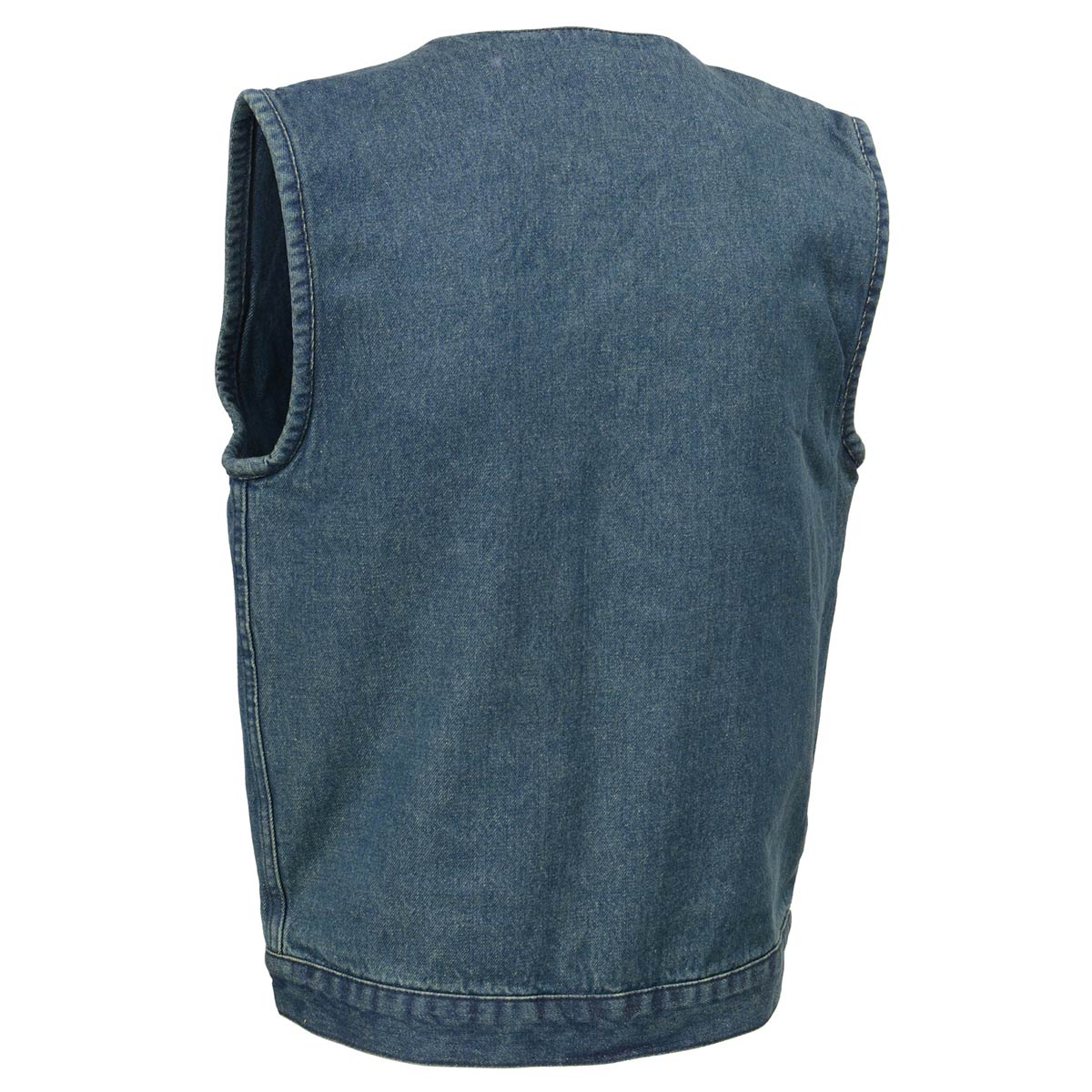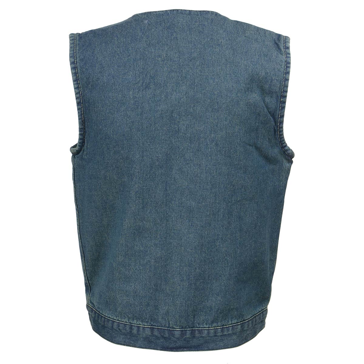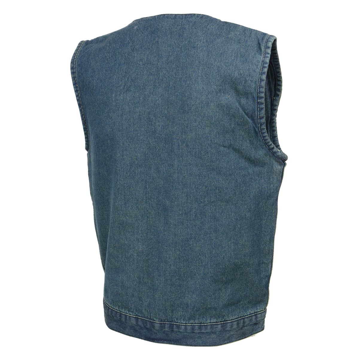 Milwaukee Leather MDM3012 Men's 'Brute' Concealed Snap Blue Denim V-Neck Club Style Vest w/ Hidden Zipper