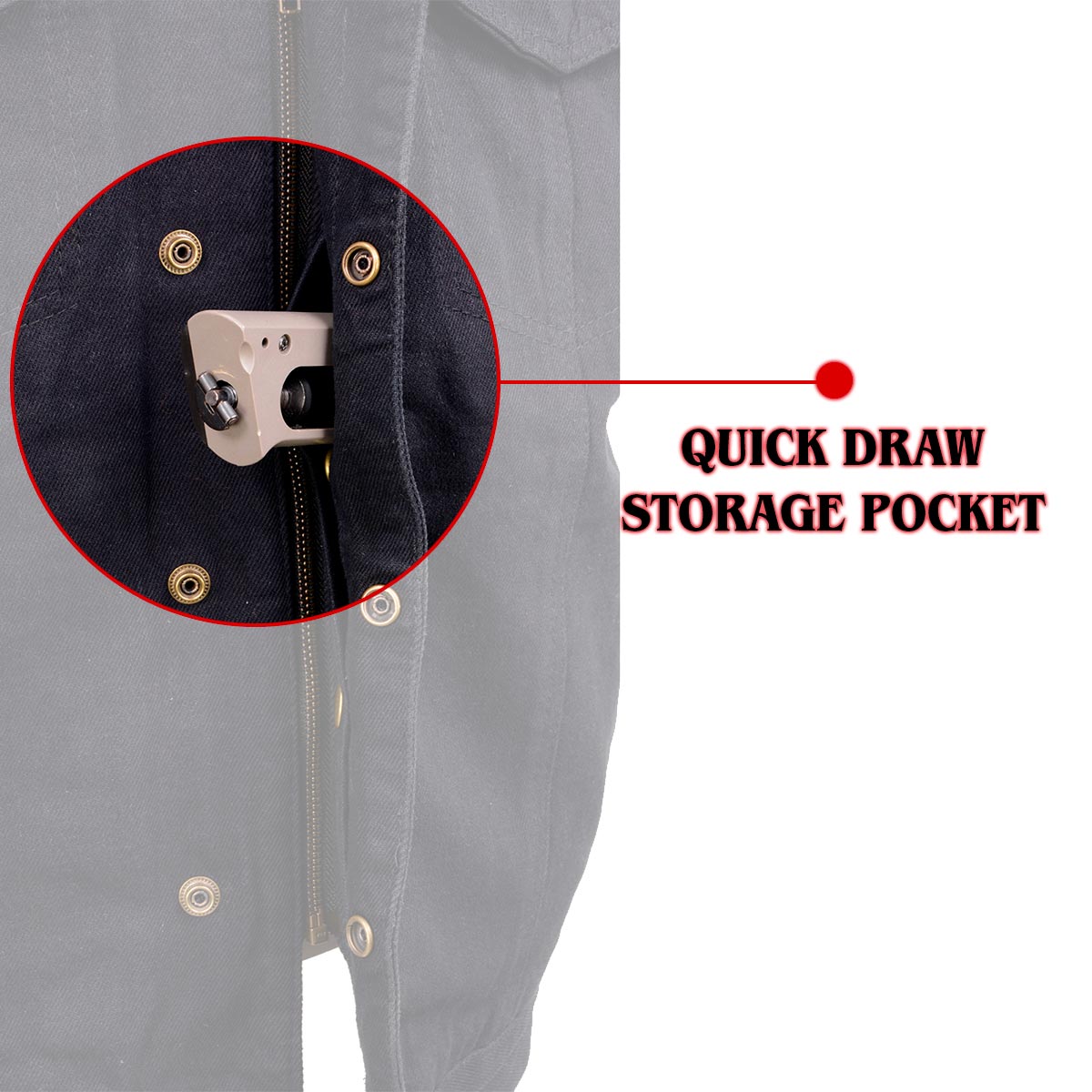 • Concealed Carry Functionality | This black biker vest for men is designed with conceal and carry storage pockets (can be used as a regular storage pockets). It features strategically placed pockets with secure closures, allowing you to discreetly carry your protection while maintaining a sleek and stylish look. Our jean vest for men features 2 front chests flap conceal carry and 2 outside lower drop storage pockets, allowing you to securely store and easily access small items such as keys, wallets.