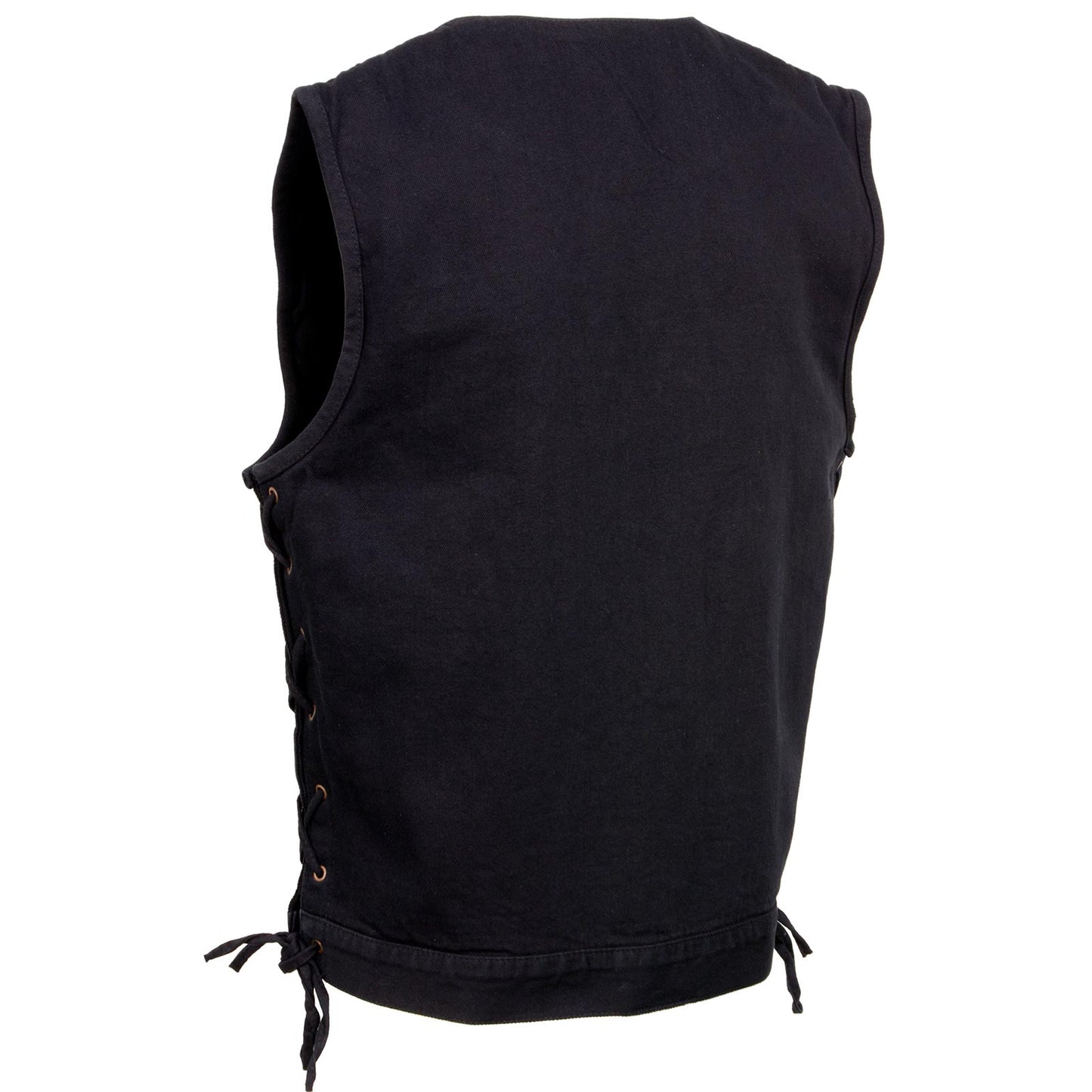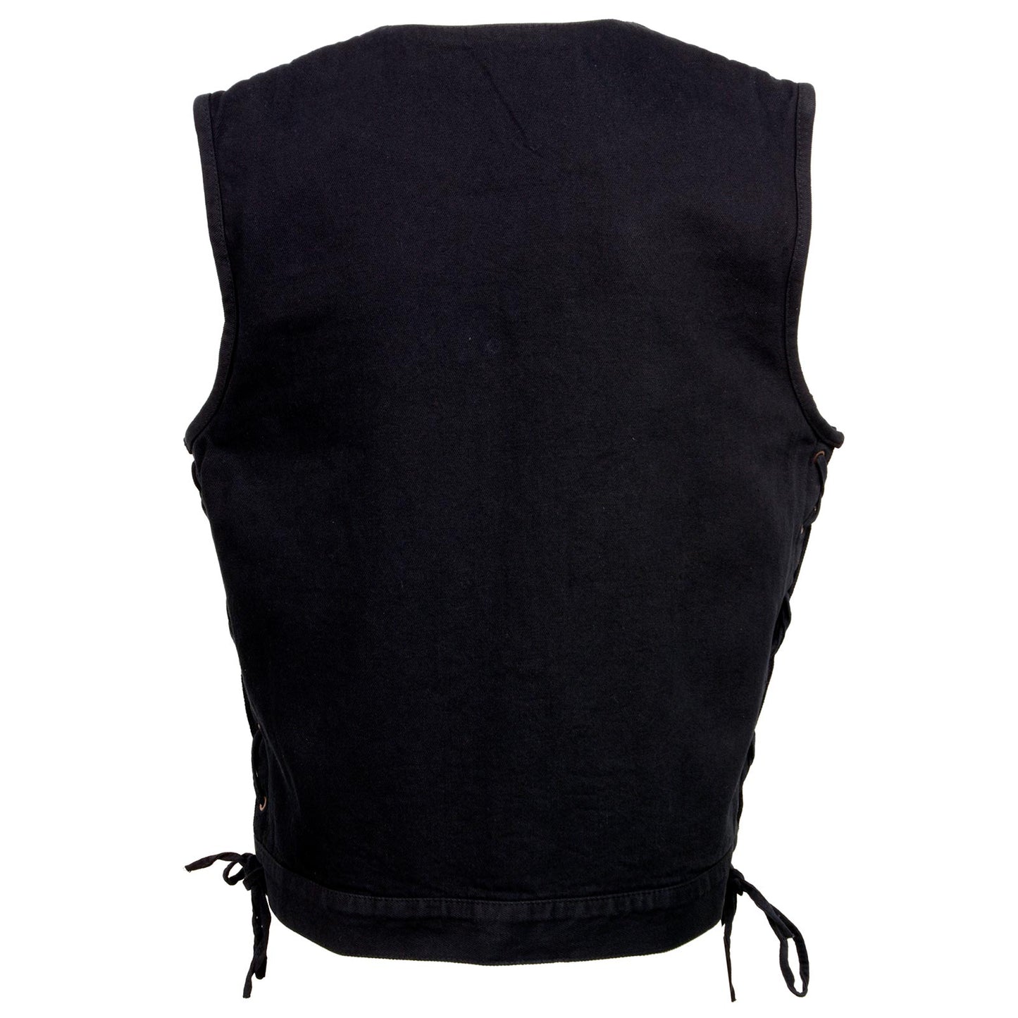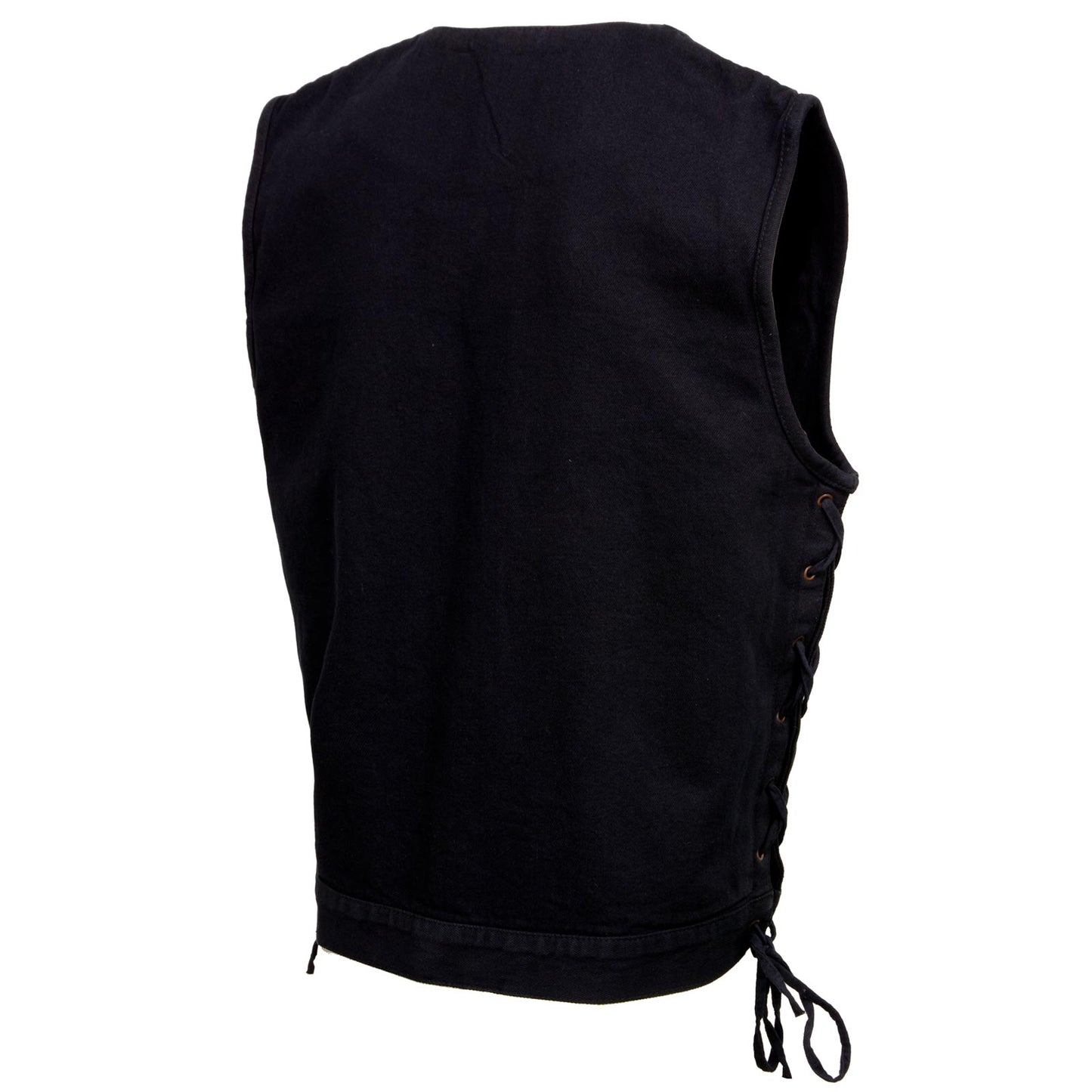 Milwaukee Leather MDM3013 Men's 'Brute' Concealed Snap Black Denim V-Neck Side Lace Club Style Vest w/Hidden Zipper