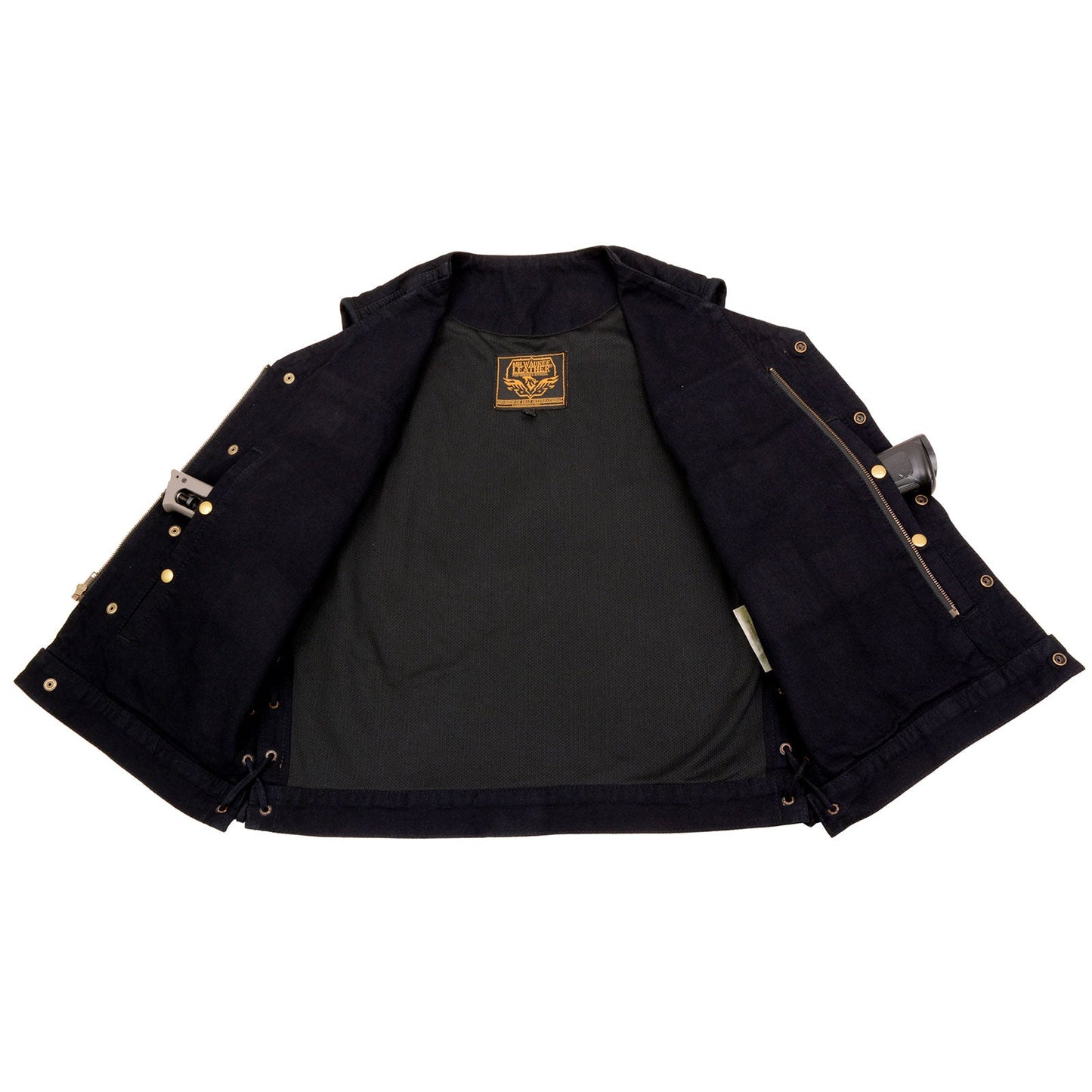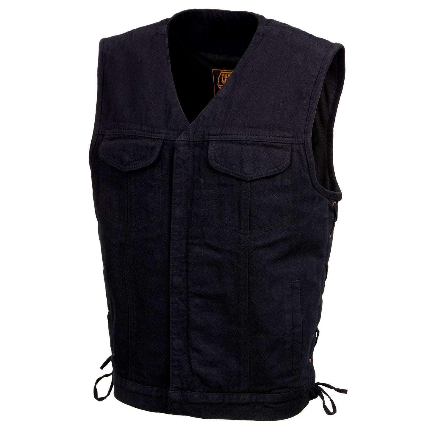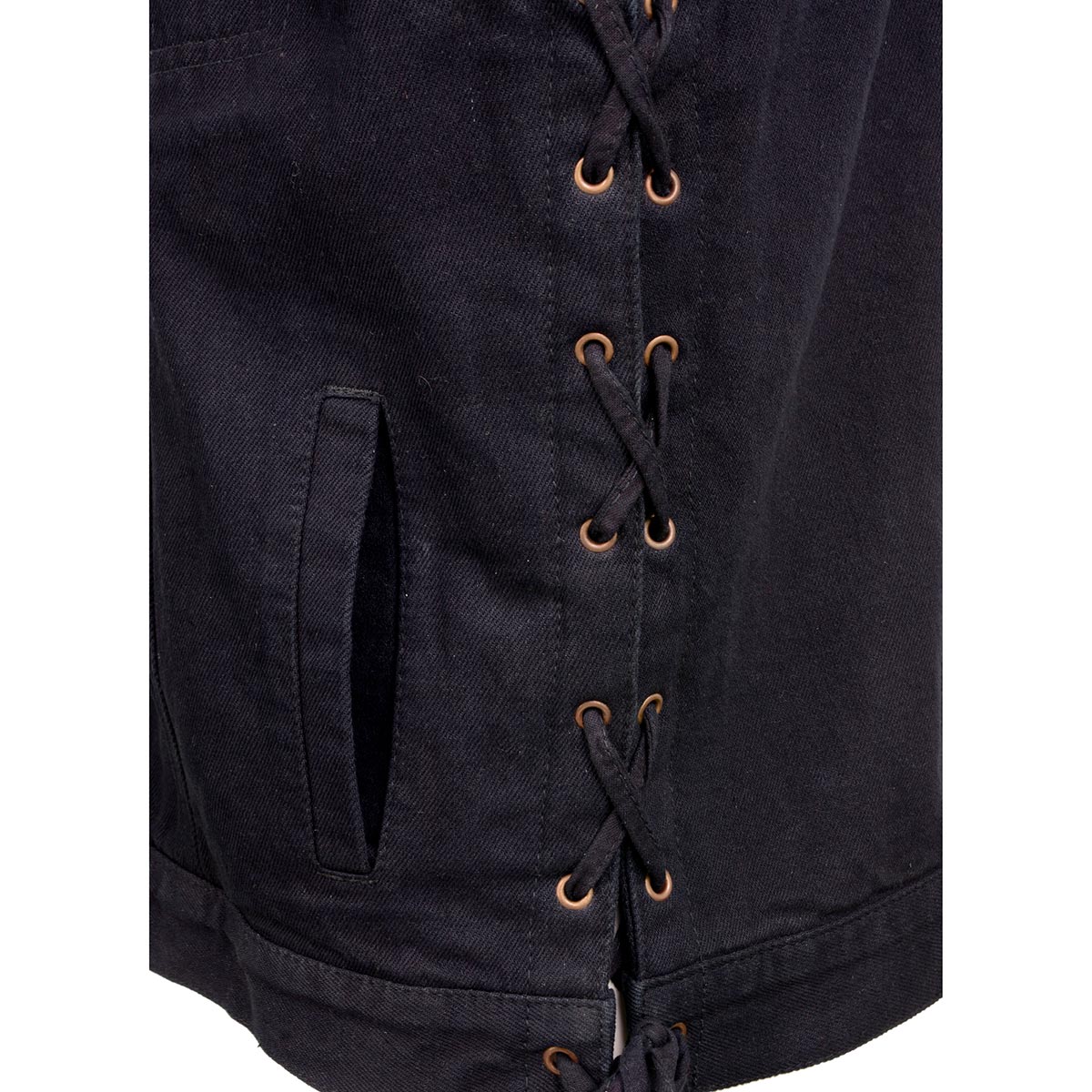 Milwaukee Leather MDM3013 Men's 'Brute' Concealed Snap Black Denim V-Neck Side Lace Club Style Vest w/Hidden Zipper