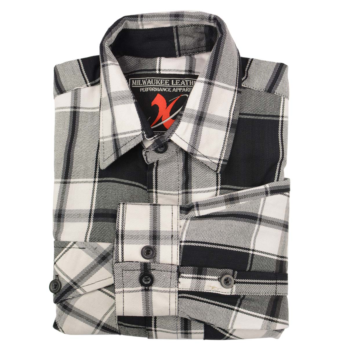 Milwaukee Leather MNG11644 Men's Flannel Plaid Black and White Long Sleeve Cotton Button Down Shirt