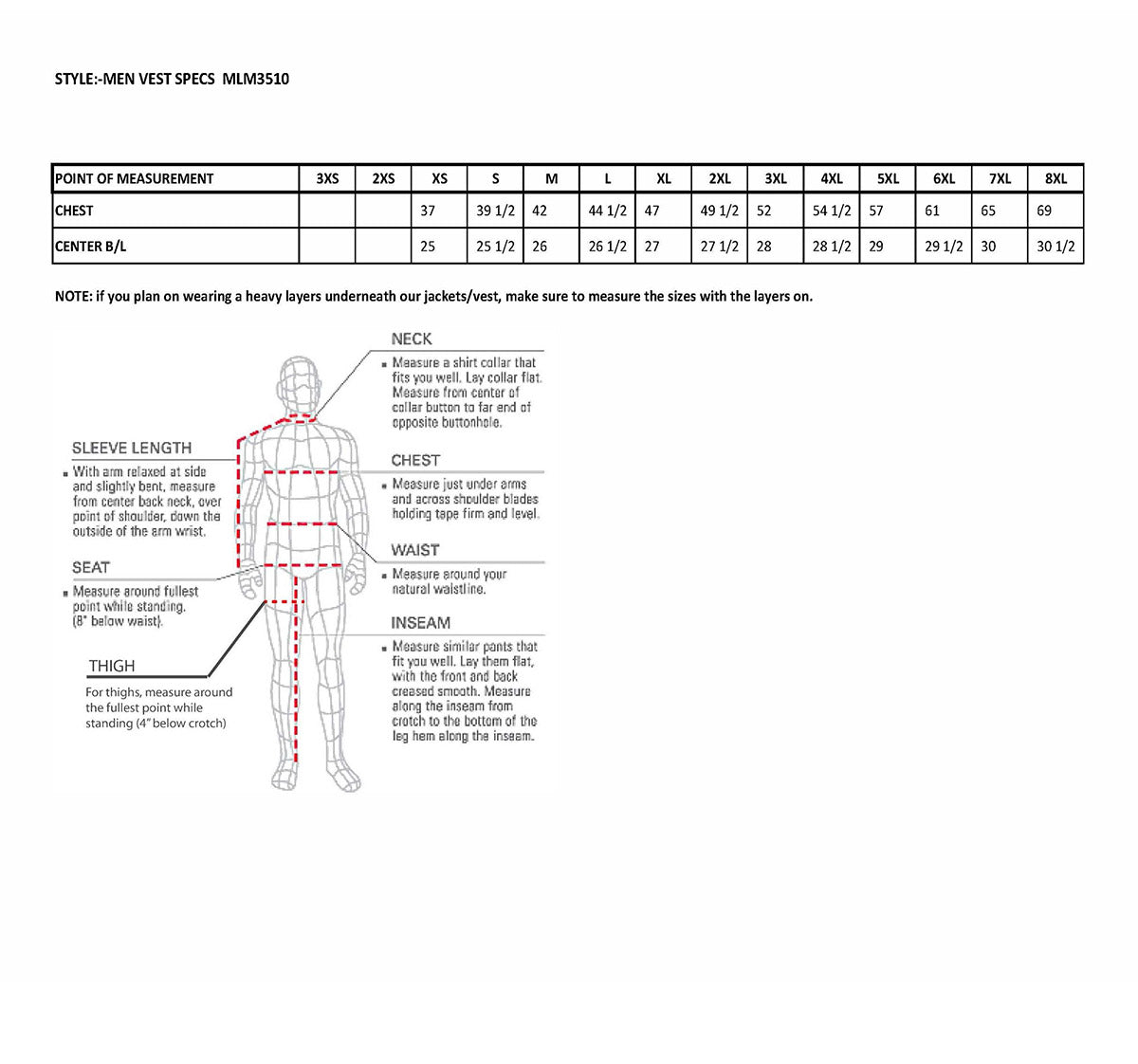 - Putting vest over jacket? – look at how much padding your jacket has - do not go by its size