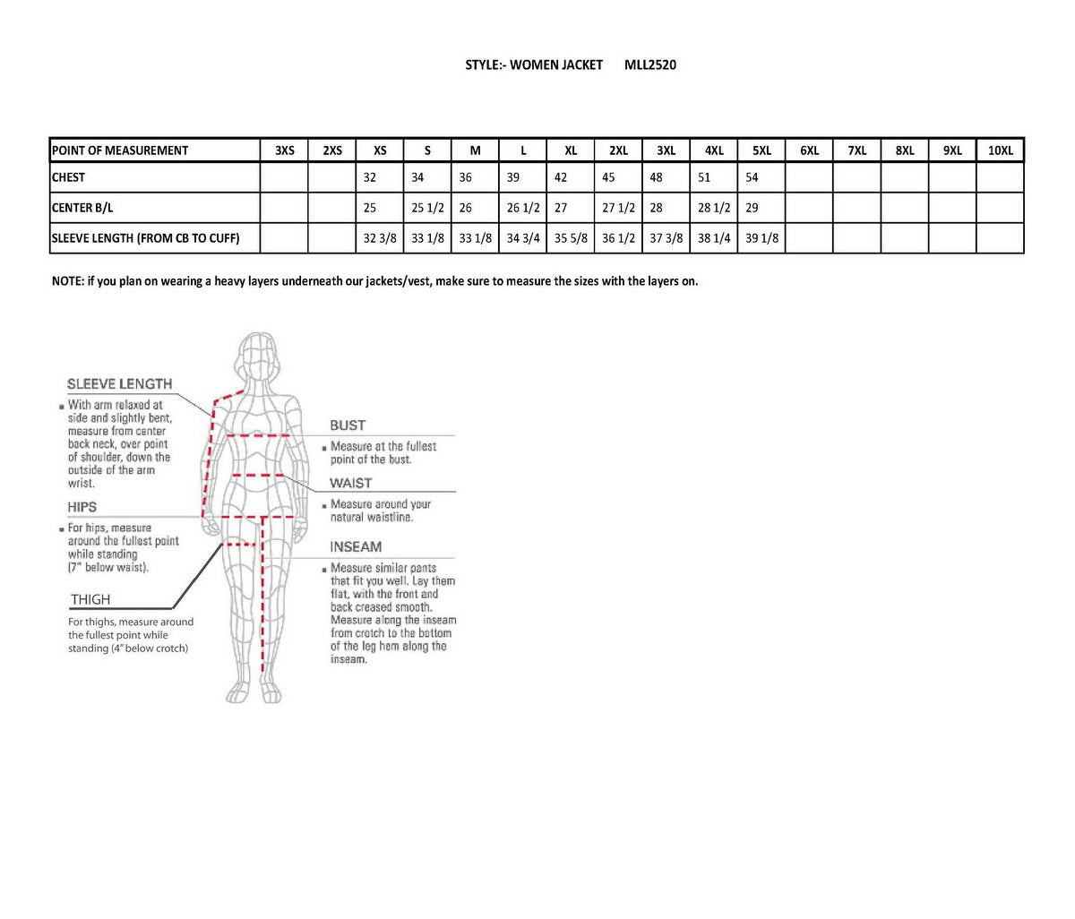 - Ladies leather can run two sizes smaller – measure your chest size!