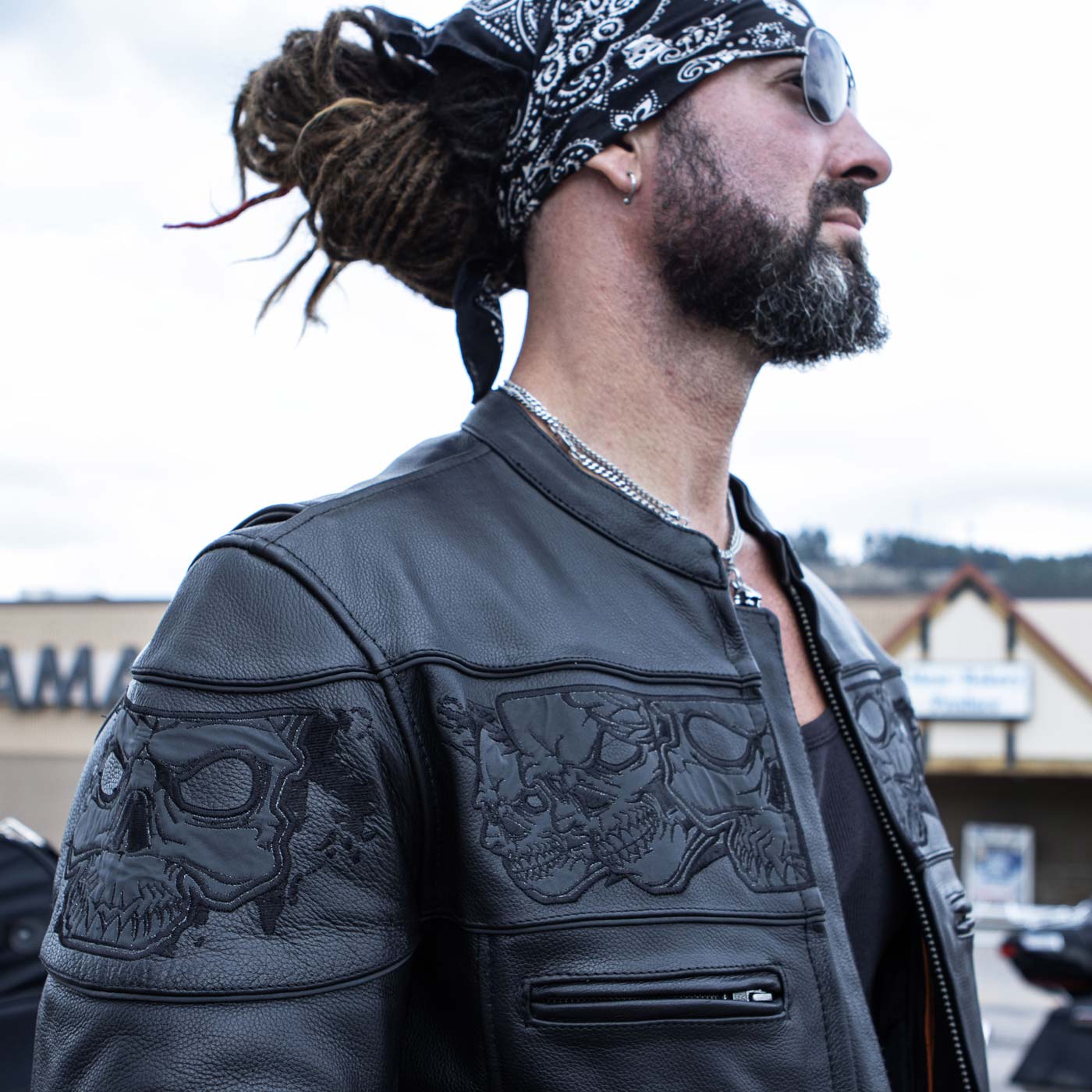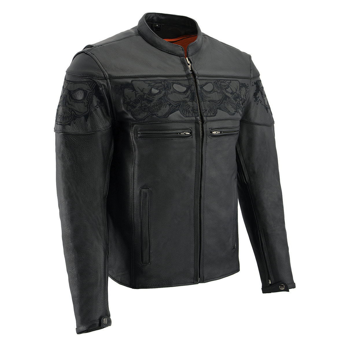 Milwaukee Leather MLM1500 Men's Crossover Black Leather Scooter Jacket with Reflective Skulls