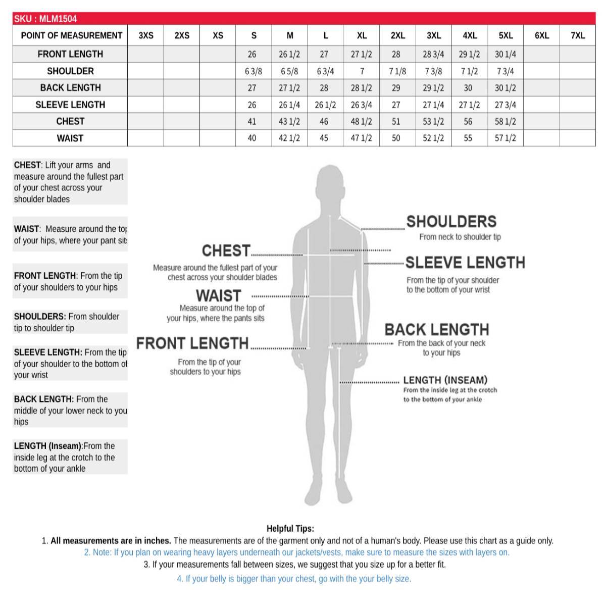 - Ventilation System: 2 Chest, 2 Arm and 2 Back Vents with Zipper Closure