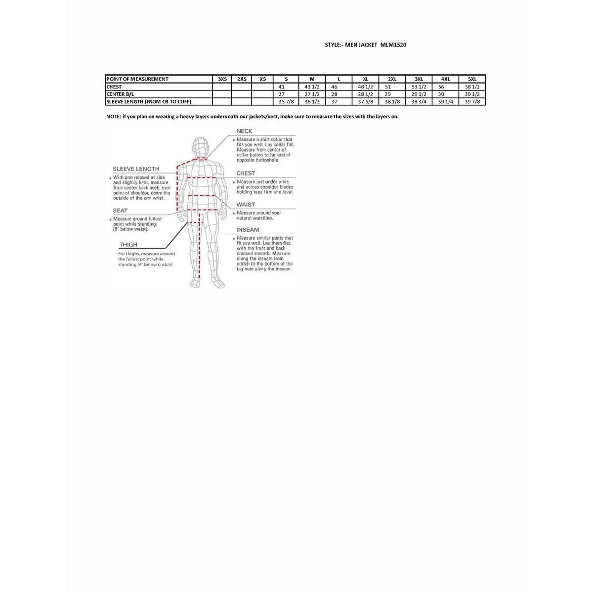 - Full Sleeve Zip Out Thermal Liner