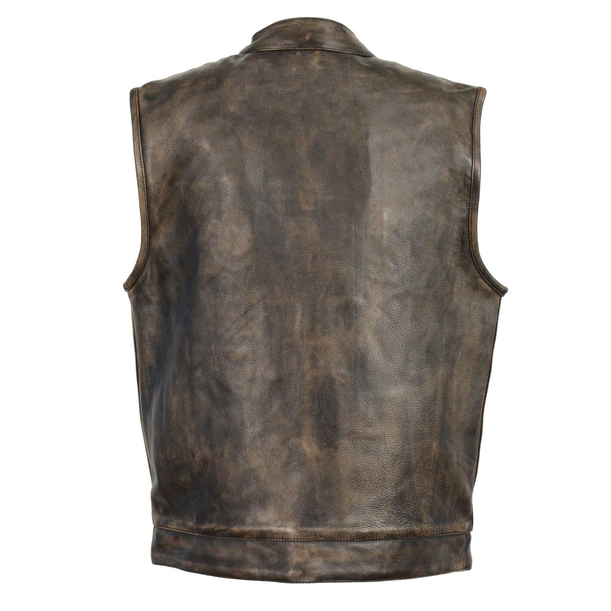 Milwaukee Leather MLM3510 Men's Black/Beige Premium Leather Club Style Vest - Dual Closure Open Neck Motorcycle Vest