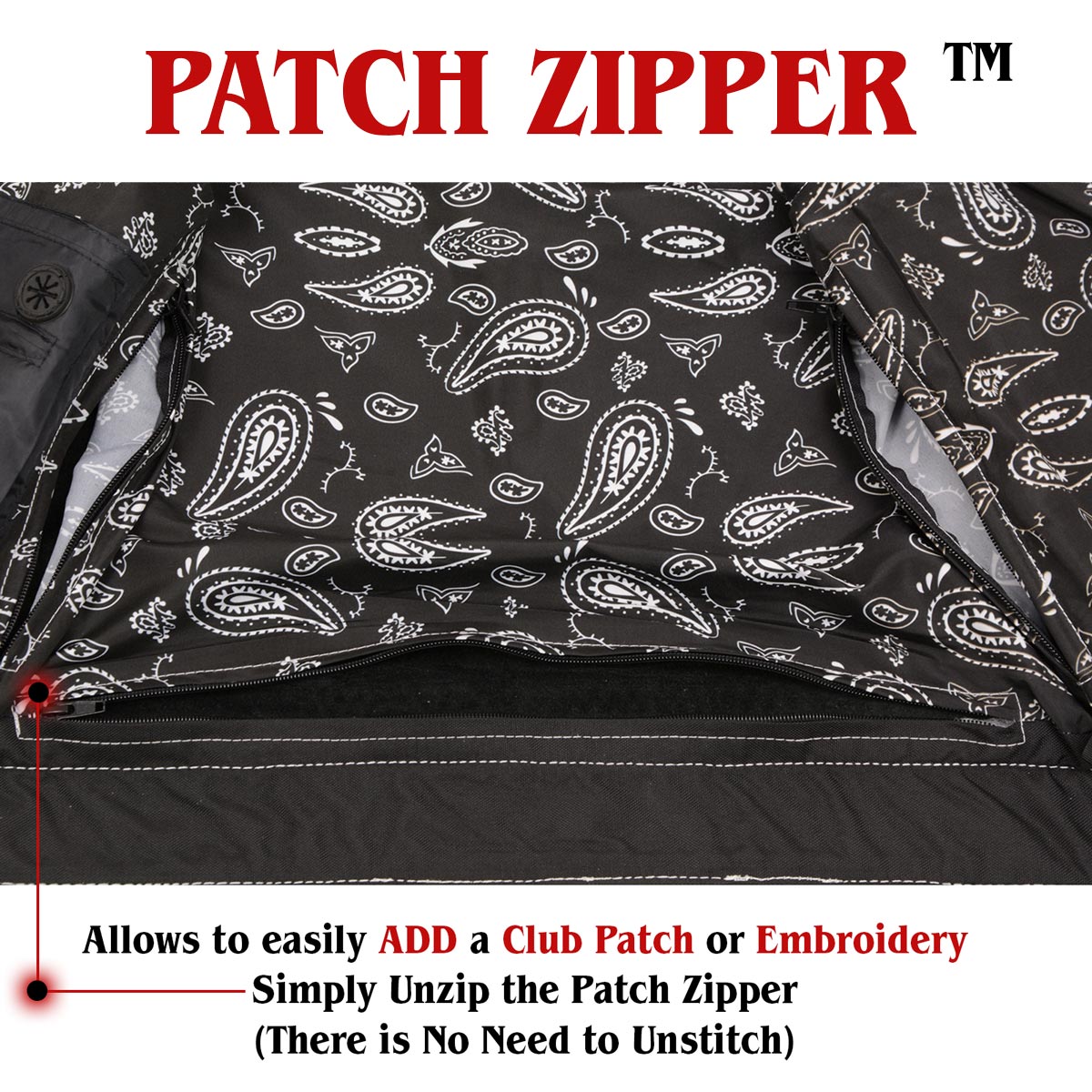 - Patented interior patch access zippers and a plain back panel for club colors or embroidery.