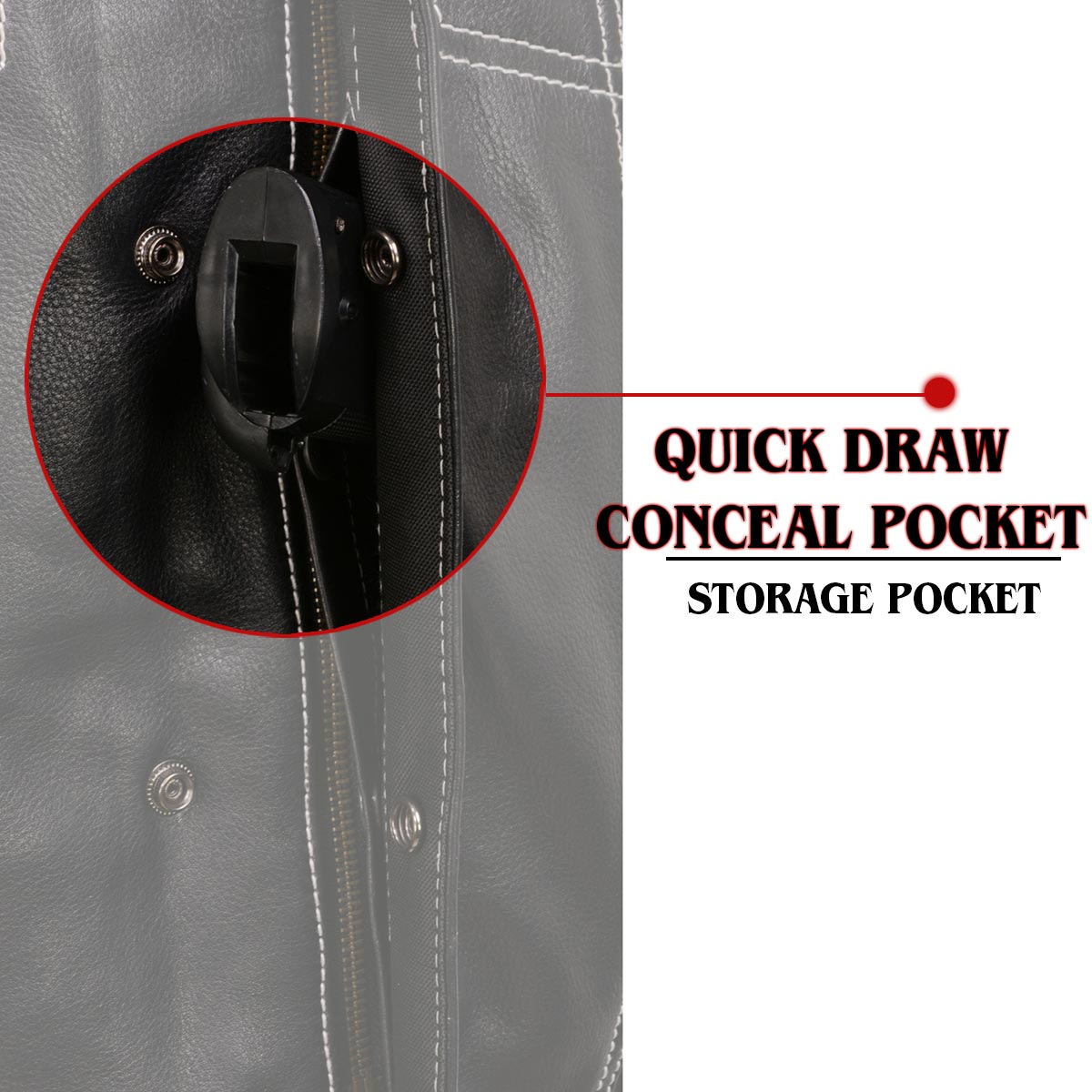 Ride prepared with dual left and right interior concealed carry pockets plus a quick draw / release pocket that can double as a large storage pocket when you’re not carrying.