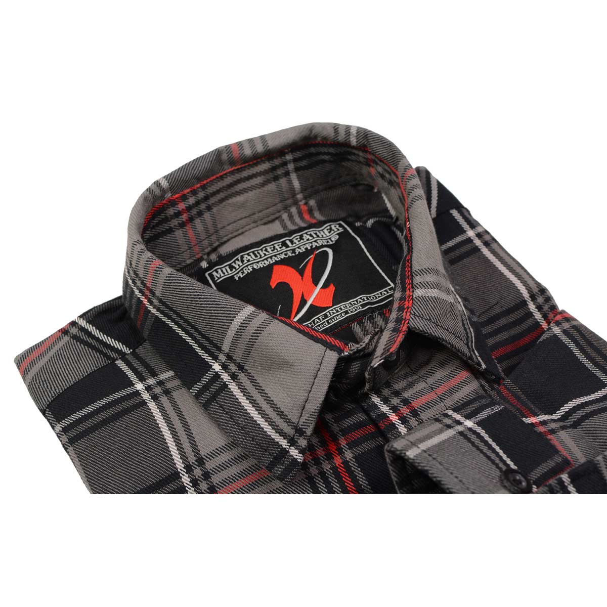 Milwaukee Leather MNG11658 Men's Black and Grey with Red Long Sleeve Cotton Flannel Shirt