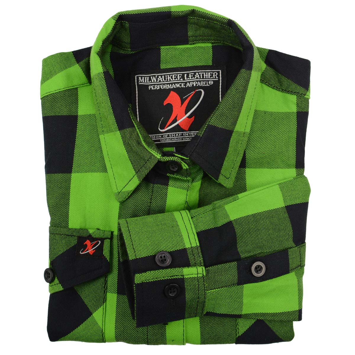 Milwaukee Leather MNG21606 Women's Lime Green and Black Long Sleeve Cotton Casual Flannel Shirt