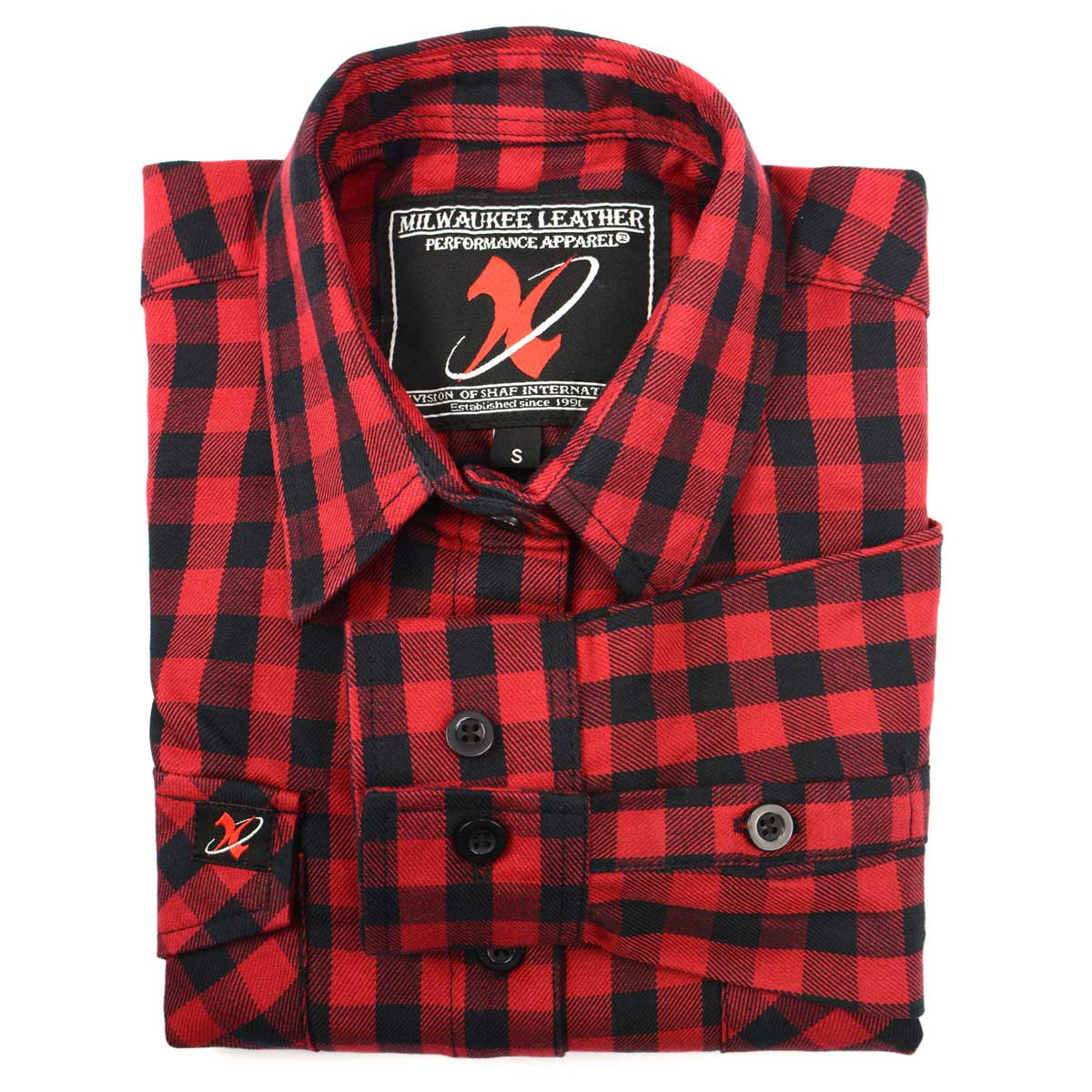 Milwaukee Leather MNG21609 Women's Casual Red and Black Long Sleeve Cotton Casual Flannel Shirt