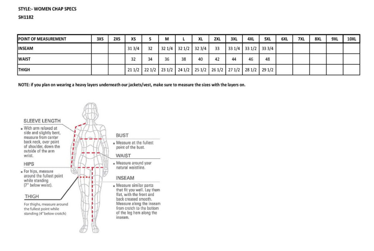- Ladies leather can run two sizes smaller – measure your chest size!