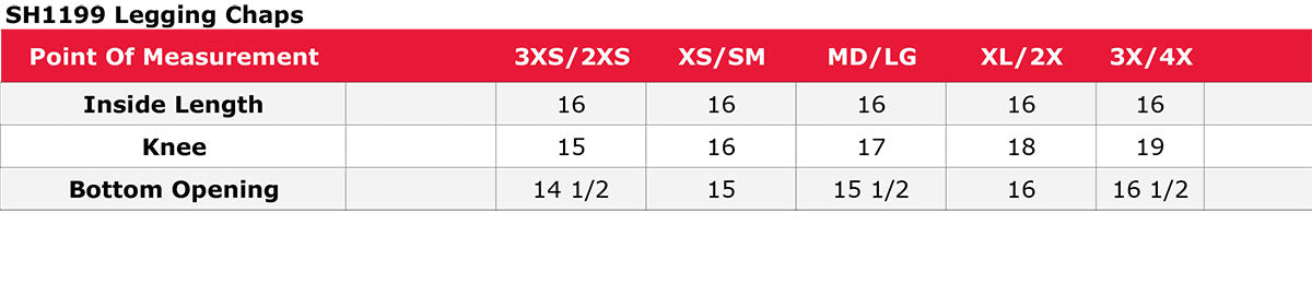 - Chaps fit by thigh size - Length can be cut as needed