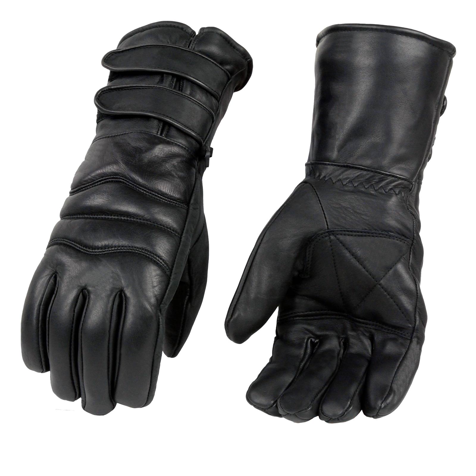 Milwaukee Leather SH233 Men's Black Leather Warm Lining Gauntlet Motorcycle Hand Gloves W/ Double Strap Cuff Pull-on Closure
