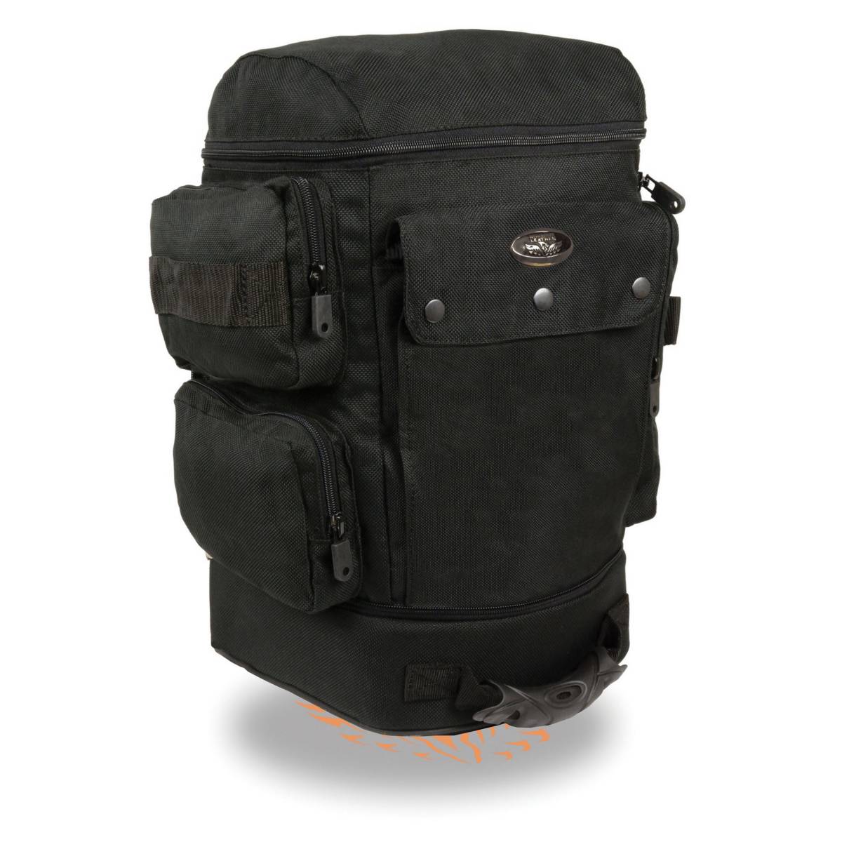 Milwaukee Leather SH688 Large Black Retractable Nylon Sissy Bar Motorcycle Bag with Luggage Handle