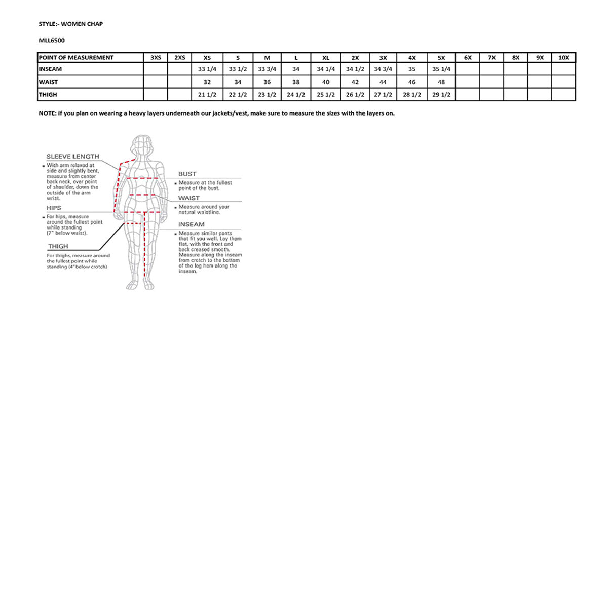 • Ladies leather can run two sizes smaller – measure your chest size!