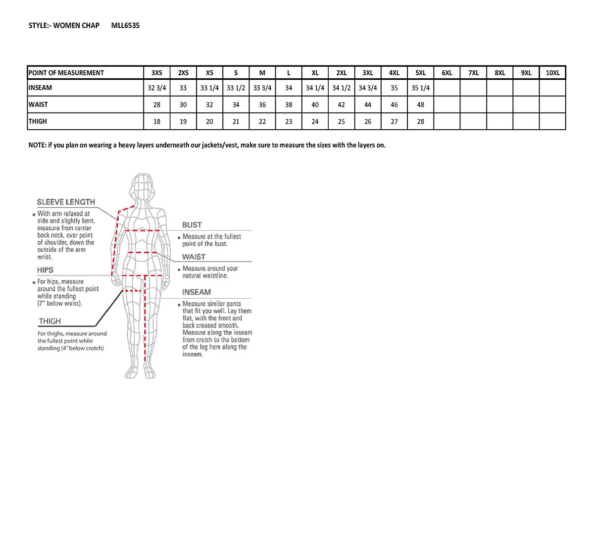 • Ladies leather can run two sizes smaller – measure your chest size!