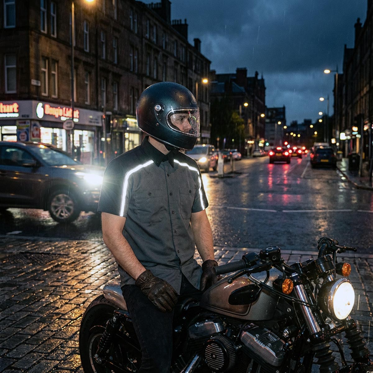 Milwaukee Motorcycle Clothing Co. Men’s Delco Gray/Black Mechanic Rider Ready Shirt w/ Reflective Strip MDM11605