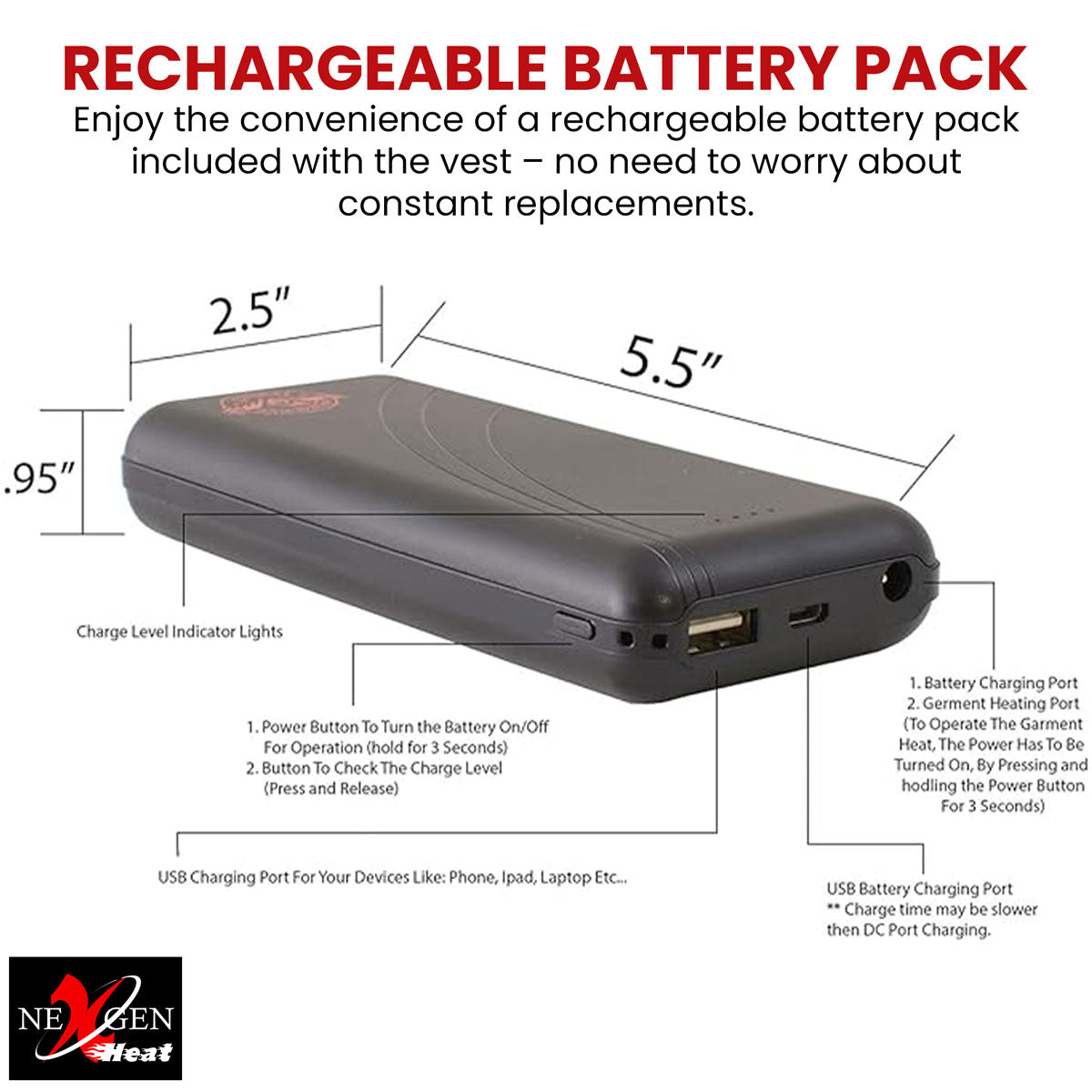 We Use Advanced High Efficiency Long Life Batteries with Up To 7 Hours of Heating. No One Comes Close to What NexGen Can Provide, We Are the Factory and We Have Full Control of How We Design, Fit, And Add Advanced Technology to All Our Heated Gear. You Won’t Find A Better Fit, or Better Heated Jacket For The Prices We Offer.
