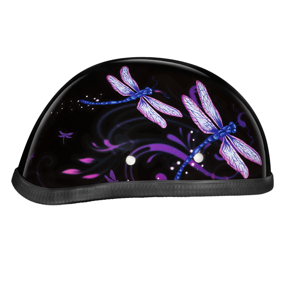 Our Premium Classic Eagle Novelty Item With The Dragonfly Graphic Does Not Meet D.O.T. Standards. The Eagle Novelty Item With The Dragonfly Graphic Is Fully Lined With A Custom Formed Interior For X-treme Comfort. Each Graphic Item Is Custom Designed And May Vary In Color Or Composition. This Eagle Graphic Novelty Item Has A Clear Lacquer Finish, Available Without Snaps/Visor Only. Head Wrap And Cloth Draw String Bag Included.