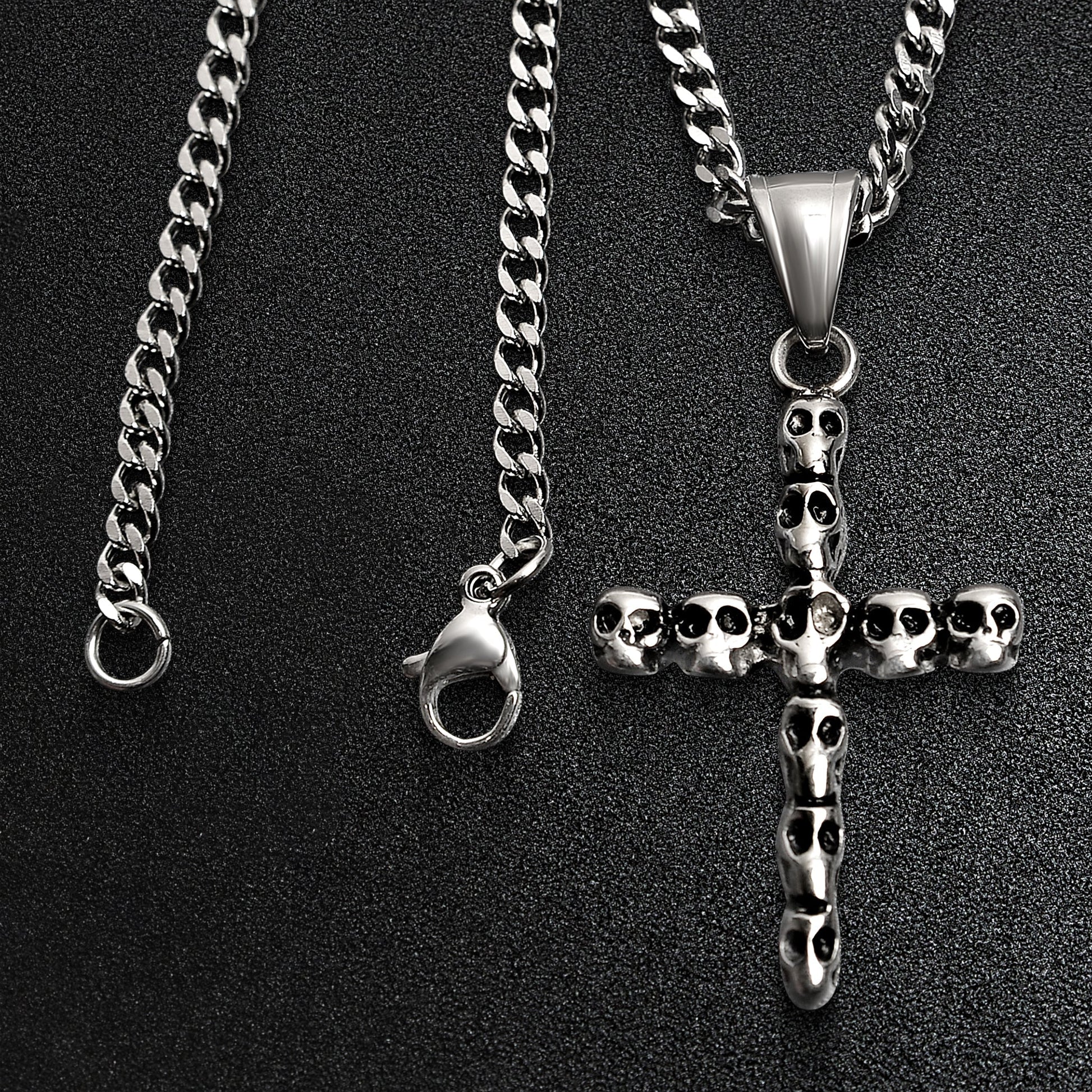 Stainless Steel Cross Of Skulls Curb Chain Necklace