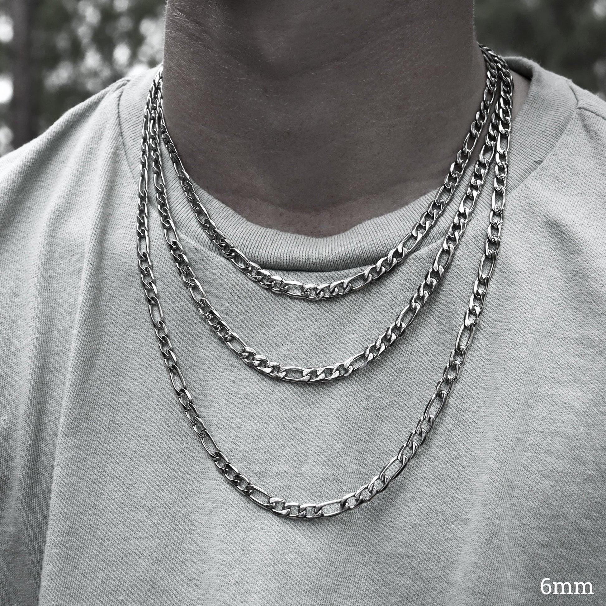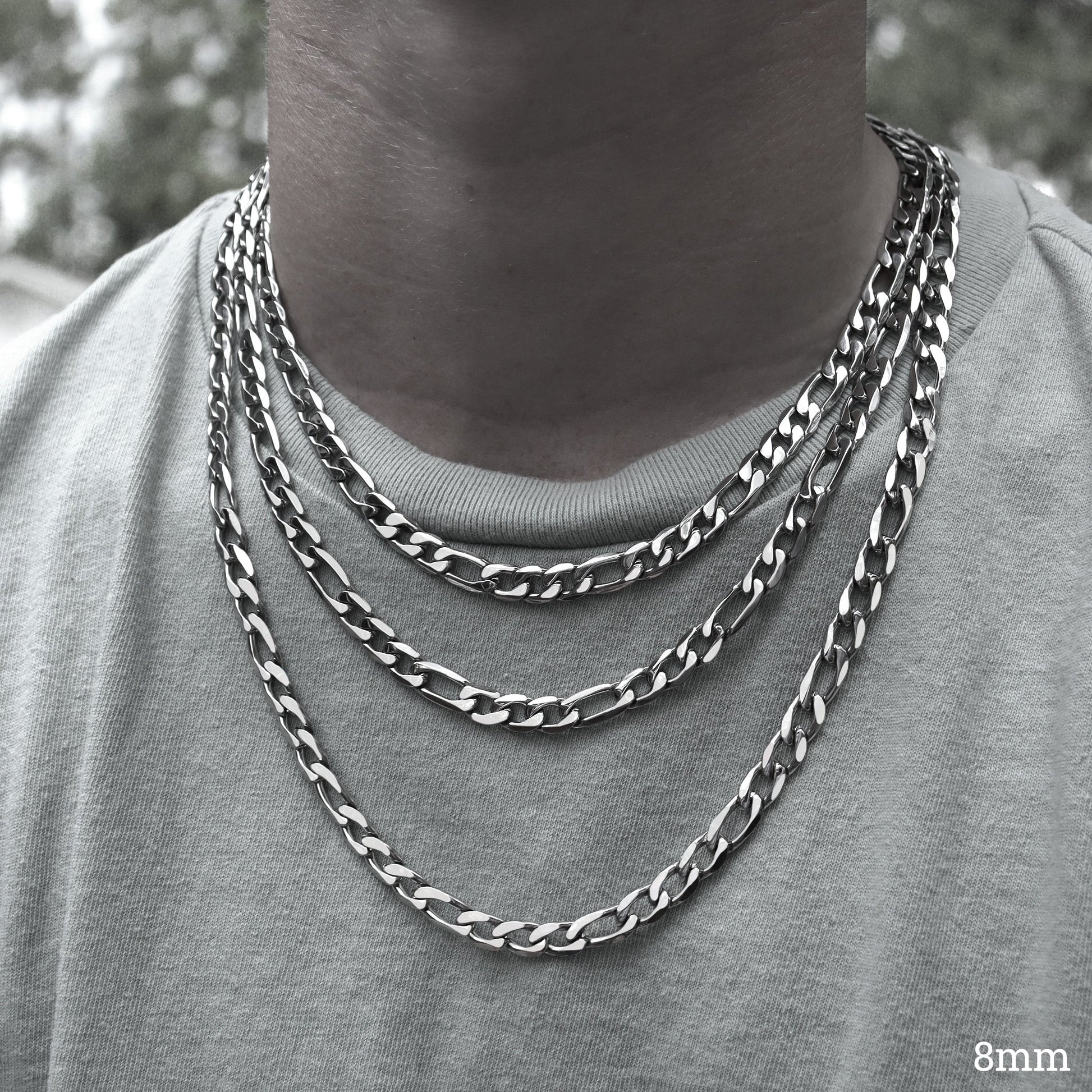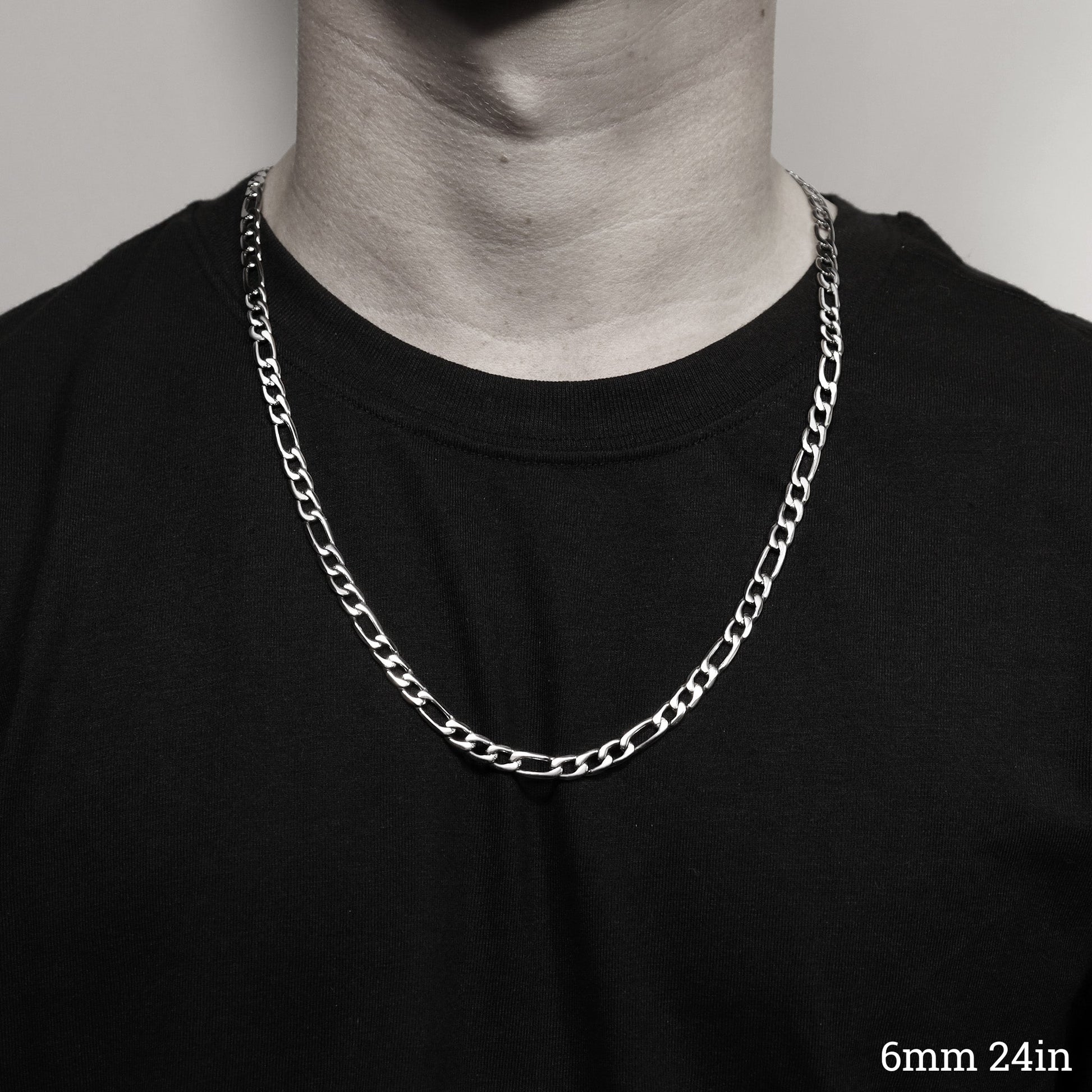 If you're looking for a chain necklace that is a step above a standard chain look, the Stainless Steel Figaro Chain Necklace is a great option to add a simple upgrade to your style. This chain necklace features a traditional Figaro chain design, an easy to secure lobster-claw clasp, and the perfect flat-lay fit. So whether you're dressing up for a special occasion or just want to add a little something extra to your everyday look, the Figaro Chain Necklace is a solid choice for you or as a gift for someone special.
