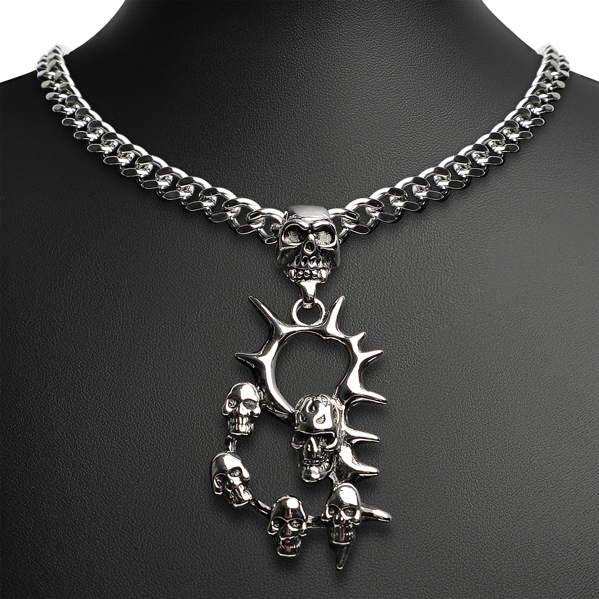Stainless Steel Multi Skull Spike Curb Chain Necklace