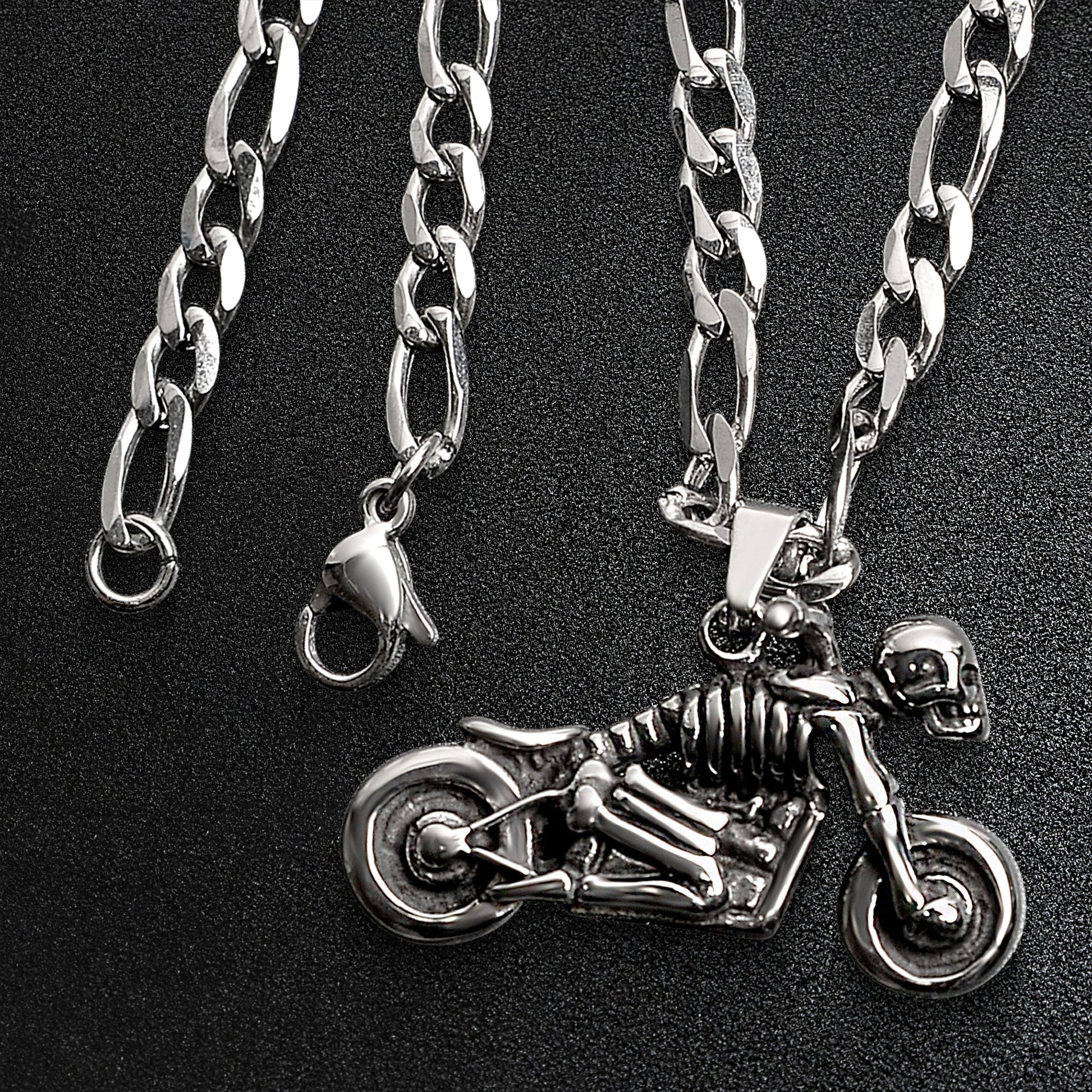 Description: Stainless Steel Skeleton Motorcycle Figaro Chain Necklace