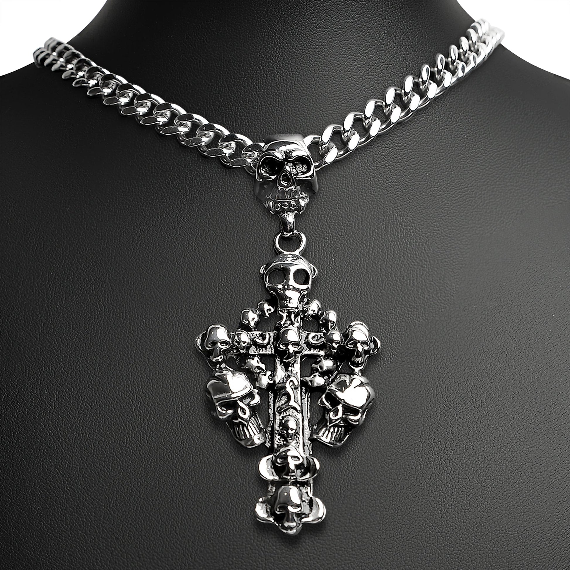Description: Stainless Steel Skull Celtic Cross Curb Chain Necklace