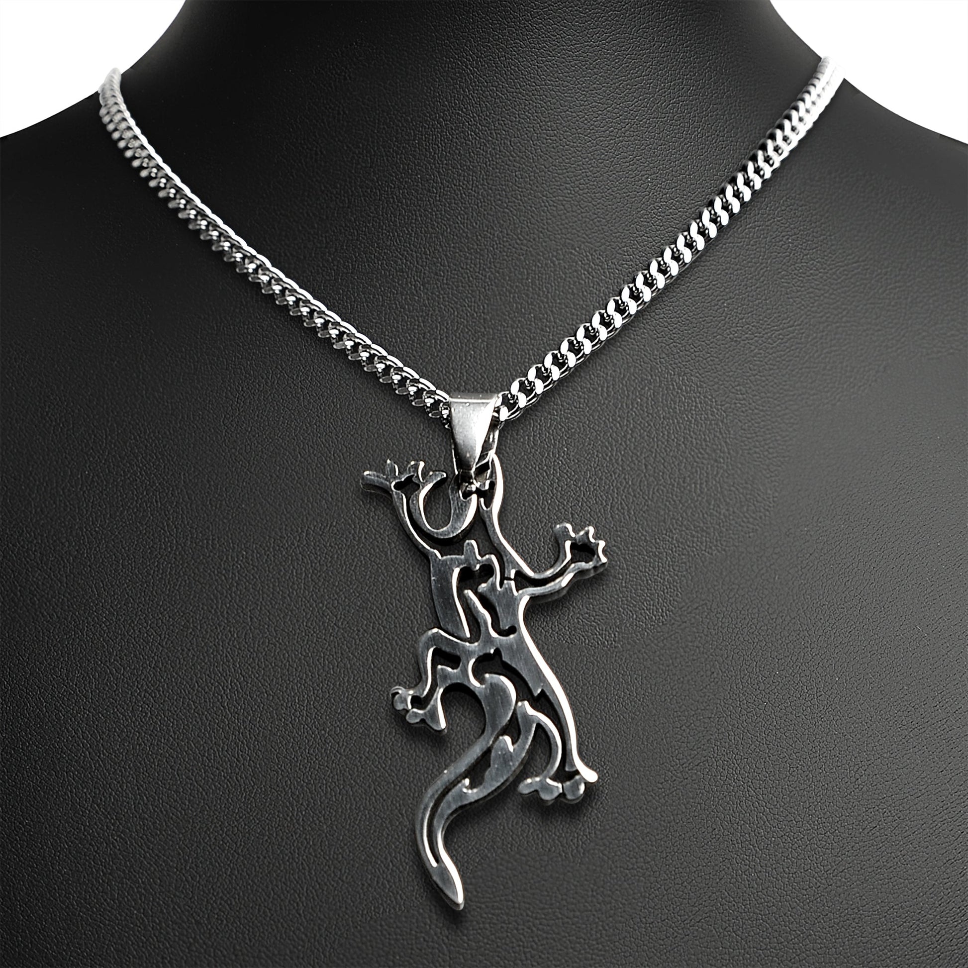 Description: Stainless Steel Tribal Lizard Curb Chain Necklace