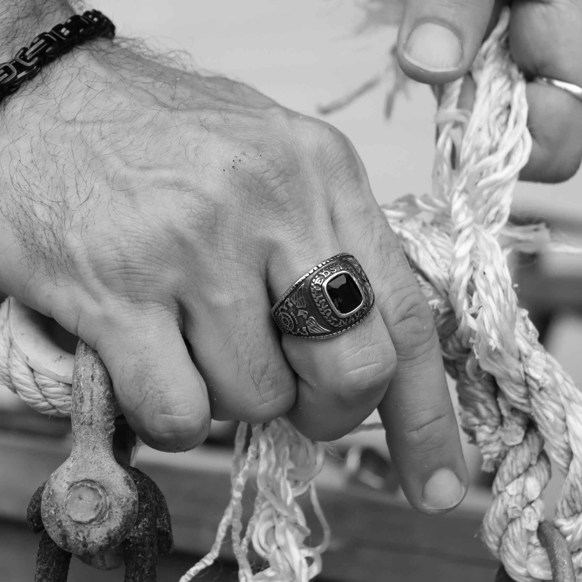 The United States Military Blue Stone Navy Ring from our Military Collection is custom molded and cast with a premium blend of surgical stainless steel that offers enhanced durability, even after exhaustive wear. The stainless steel Blue Stone Navy Ring features a deep blue ocean inspired stone centerpiece with a detailed eagle sigil on both sides of the ring. This ring is a bulkier styled ring that is great for men who want a classic everyday ring or a veteran who wants a memorable keepsake to help them remember their time served in the United States Navy. Whether you treat yourself or a loved one in the US Navy, this ring will make a standout addition in any jewelry collection!