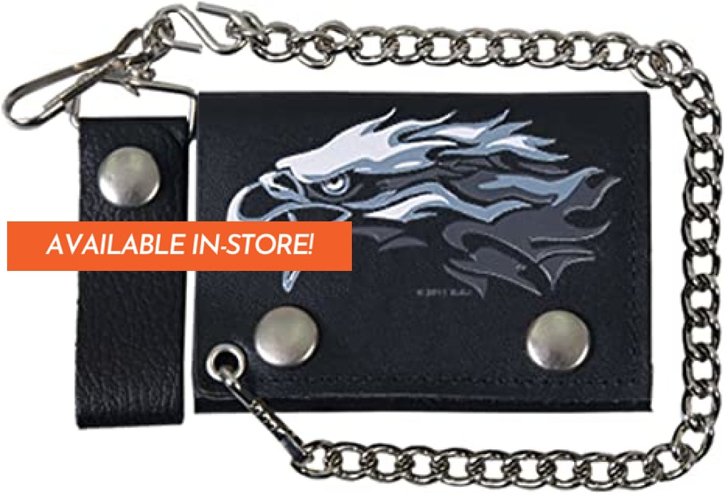 4" Tribal Eagle Tri-fold WLB1020 Black Leather Tri-Fold Wallet with Chain | Hot Leathers