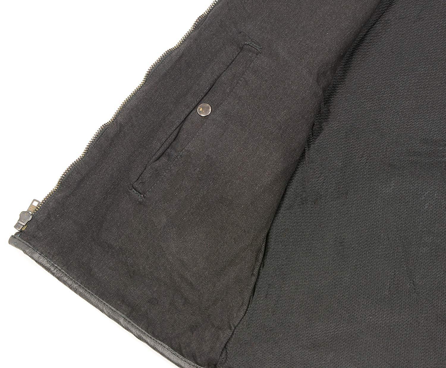 Club Vest CVM3038 Men's Black Denim Collarless Motorcycle Club Style Vest with Leather Trim