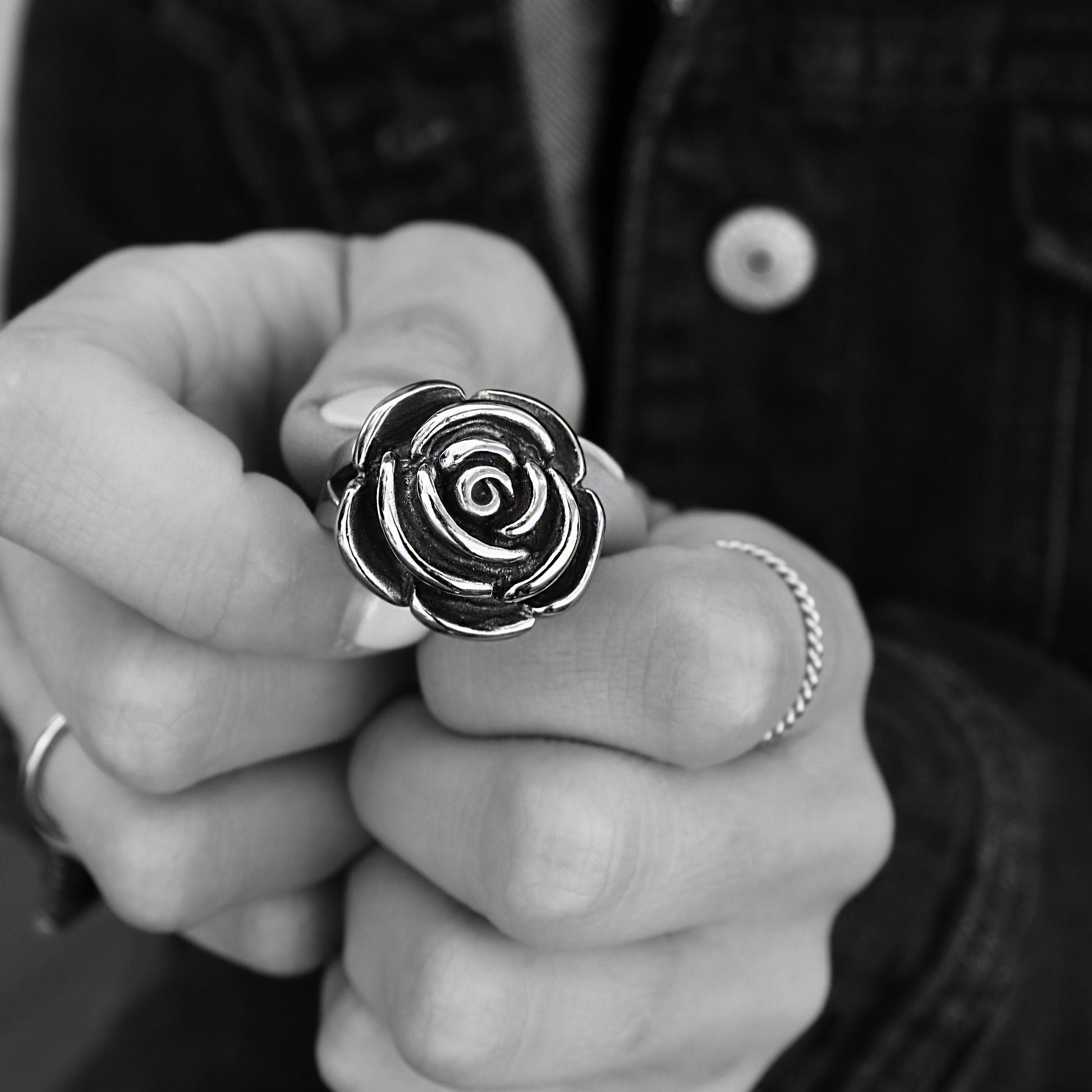The Detailed Rose Stainless Steel Polished Ring is custom molded and cast with a premium blend of surgical stainless steel that offers durability, even after exhaustive wear. This ring features a unique large rose flower design and a clean polished finish for a great accent to any look. The Detailed Rose Stainless Steel Polished Ring looks great as an everyday statement ring that can be worn in water or while you sweat without worry.