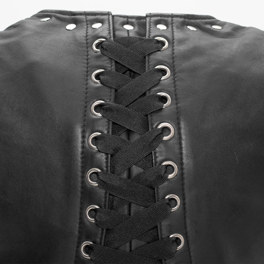 The Empress is for those who want some serious style points - the rivets and corset back lining make this V-neck, buttery soft, sheep leather vest stand out in a crowd! Lots of pockets including conceal carry, cell and two button slash pockets, along with accordion stretch at the hips.