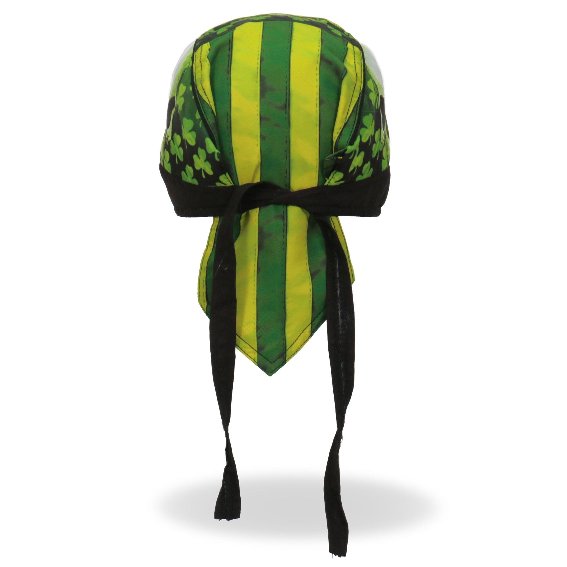 Whether you're hitting the road for a joyride on your motorcycle, getting together with your club, or just need some UV protection and sweat control, Hot Leathers premium doo rag head wraps are just what you need! Put on your new headwrap bandana while you run errands or handle some yard work. Represent your unique style with our moisture wicking, mesh lined head wraps, showcasing bright, long lasting designs sure to turn heads! This head wrap features our original green Celtic skull and clovers design.