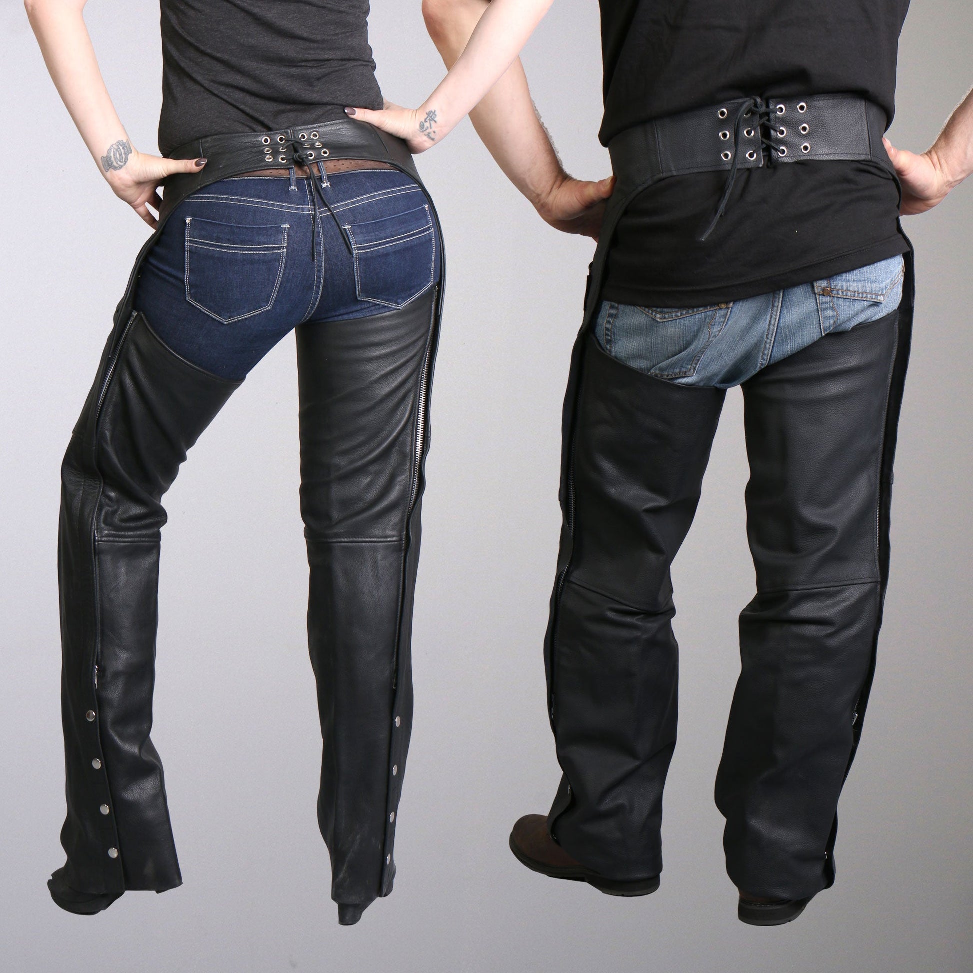Hot Leathers CHM1001 Black Fully Lined Unisex Premium Leather Motorcycle Biker Rider Chaps