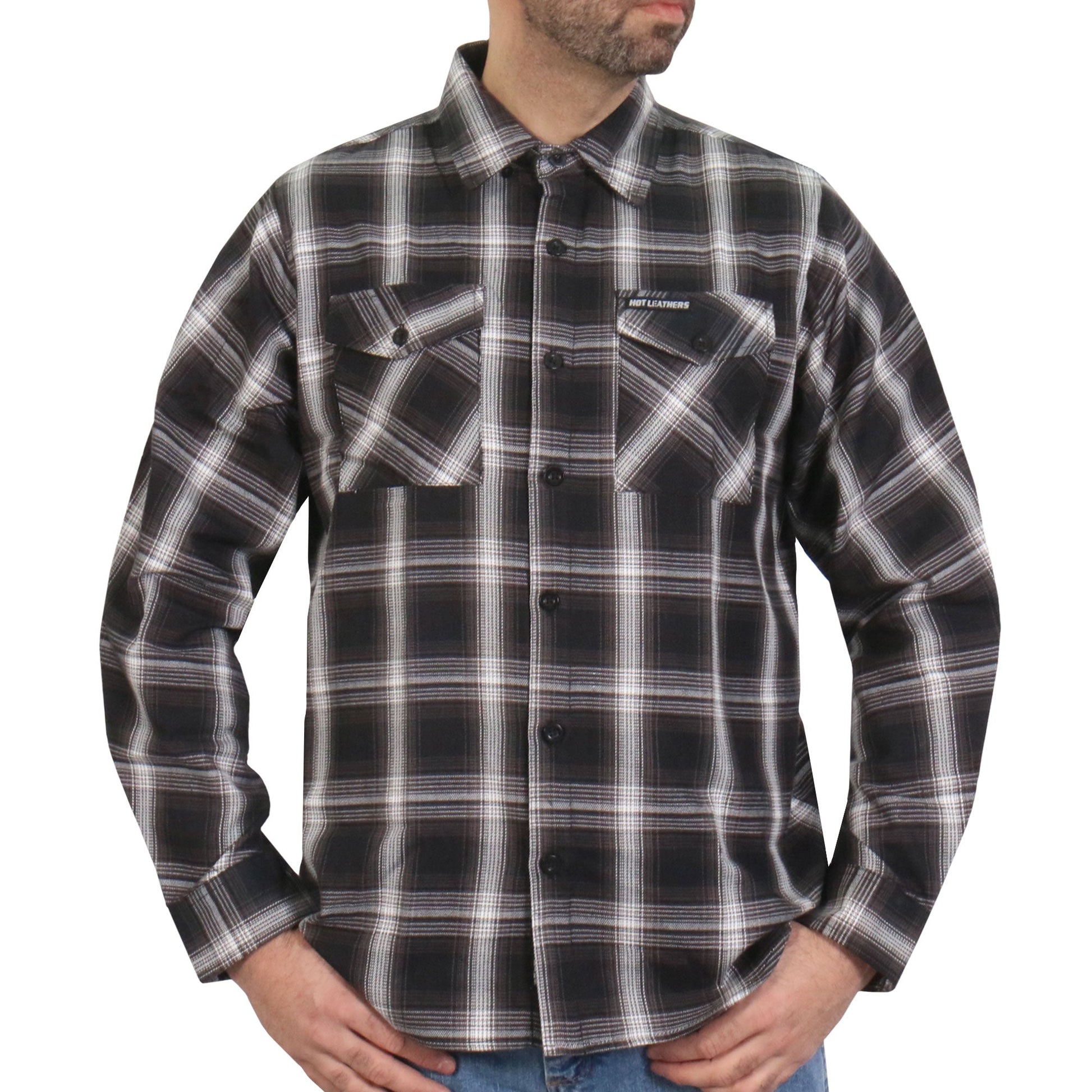 Hot Leathers FLM2023 Men's 'White and Black' Flannel Long Sleeve Shirt