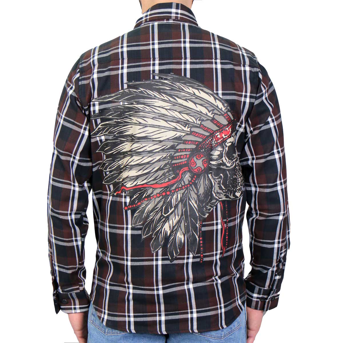 - STYLE: Skull Headdress Print On Front Left Chest and Full Back . Perfect for Anytime Casual Wear, Working Outdoors or Riding Your Motorcycle