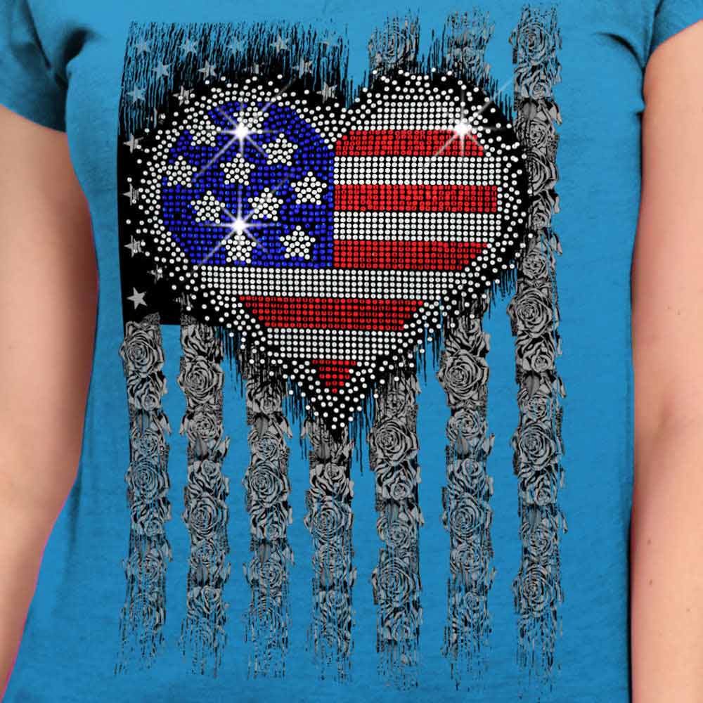 Hot Leathers GLC1560 Ladies Sapphire Short Sleeve Heart Bling T-Shirt