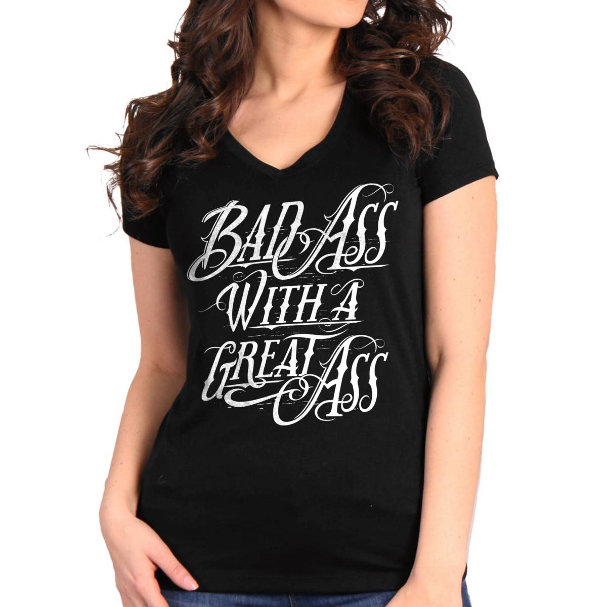 Hot Leathers GLC1589 Ladies Black Badass with A Great Ass V Burnout T-Shirt