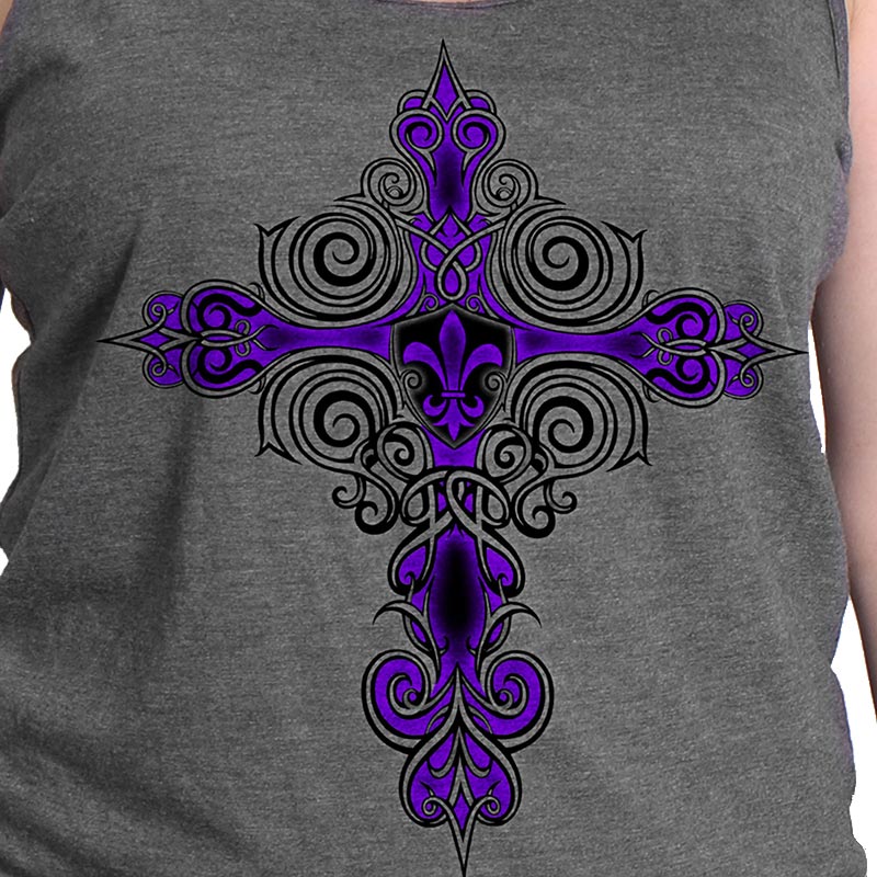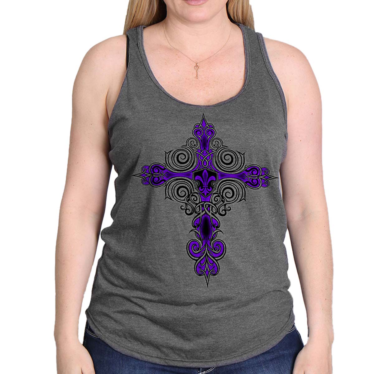 Hot Leathers GLC2524 Ladies Dark Gray Cross De Lis Tank Top Shirt